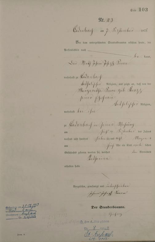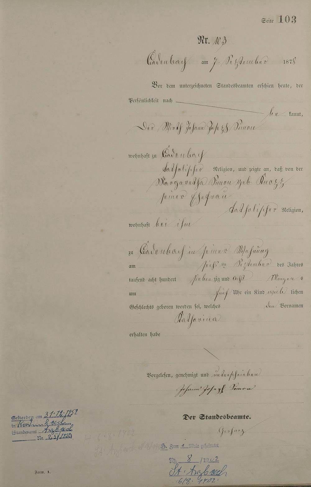 Geburtsregister 1878