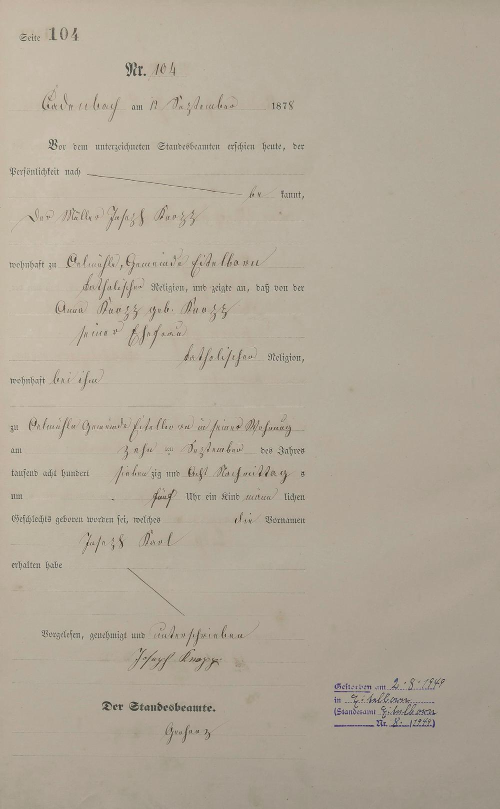 Geburtsregister 1878