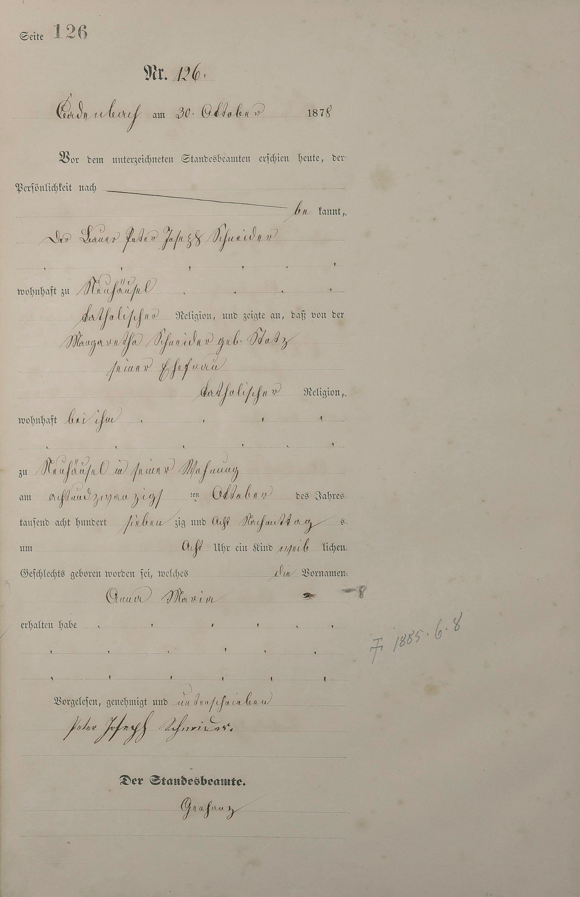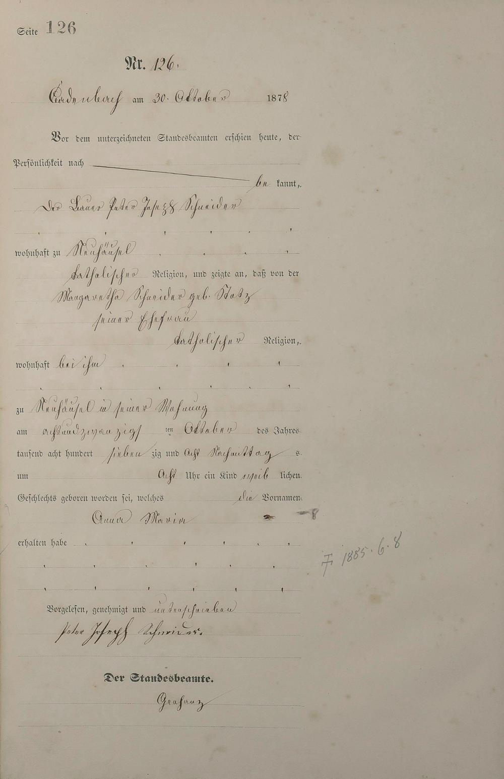 Geburtsregister 1878