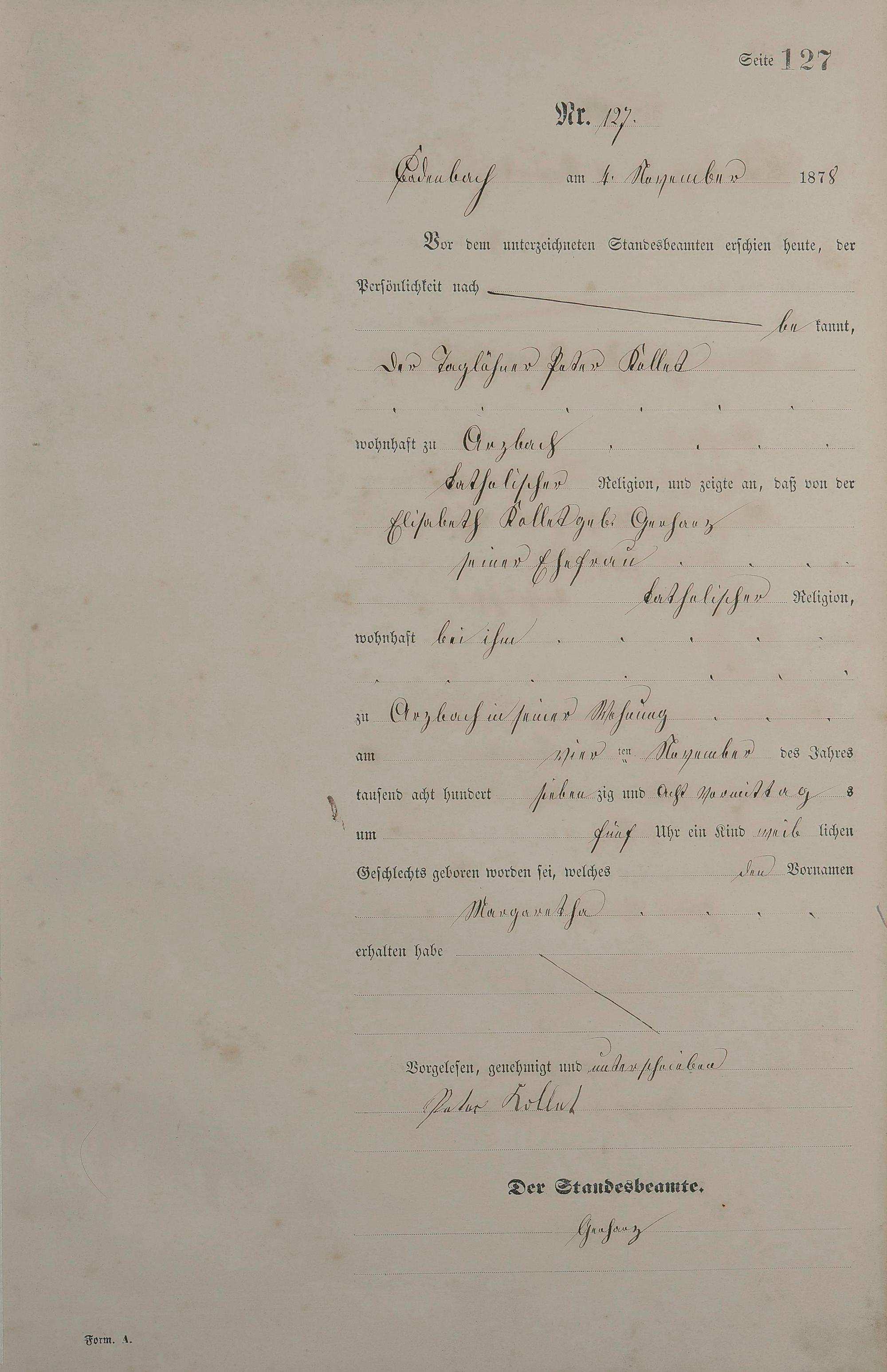 Geburtsregister 1878