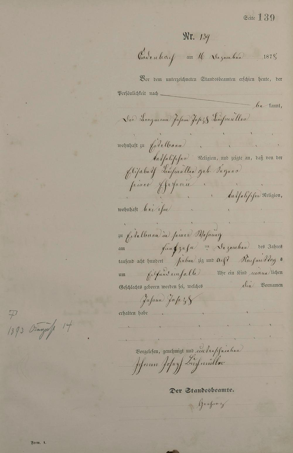 Geburtsregister 1878