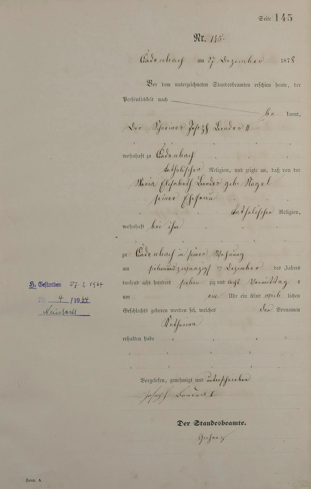 Geburtsregister 1878