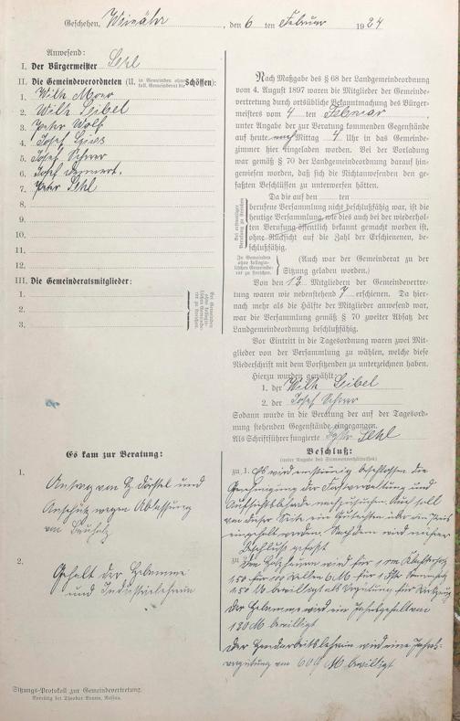 Gemeinderatssitzungsprotokolle 10. Febr. 1913 - 6. Febr. 1924