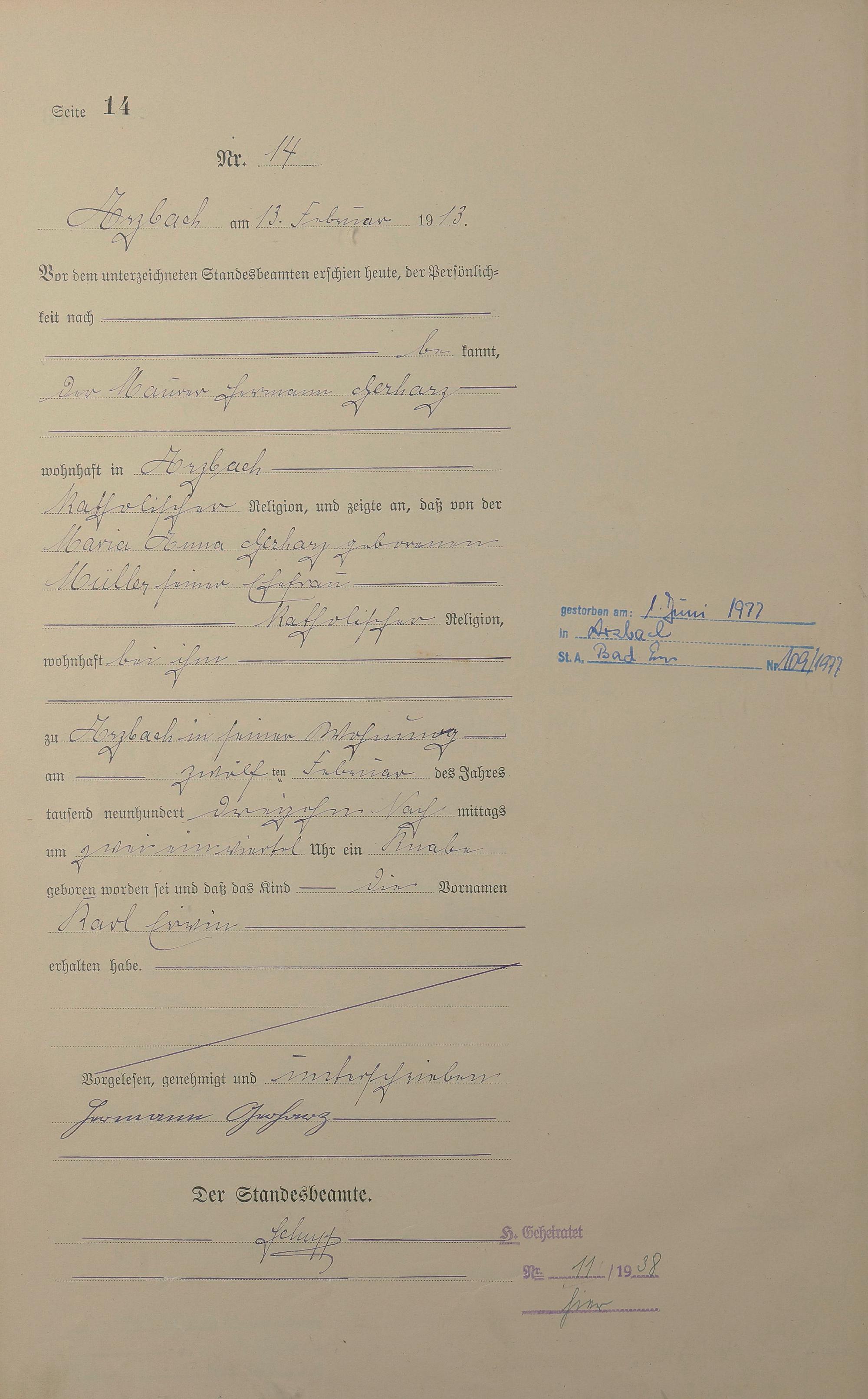 Geburtsregister 1913