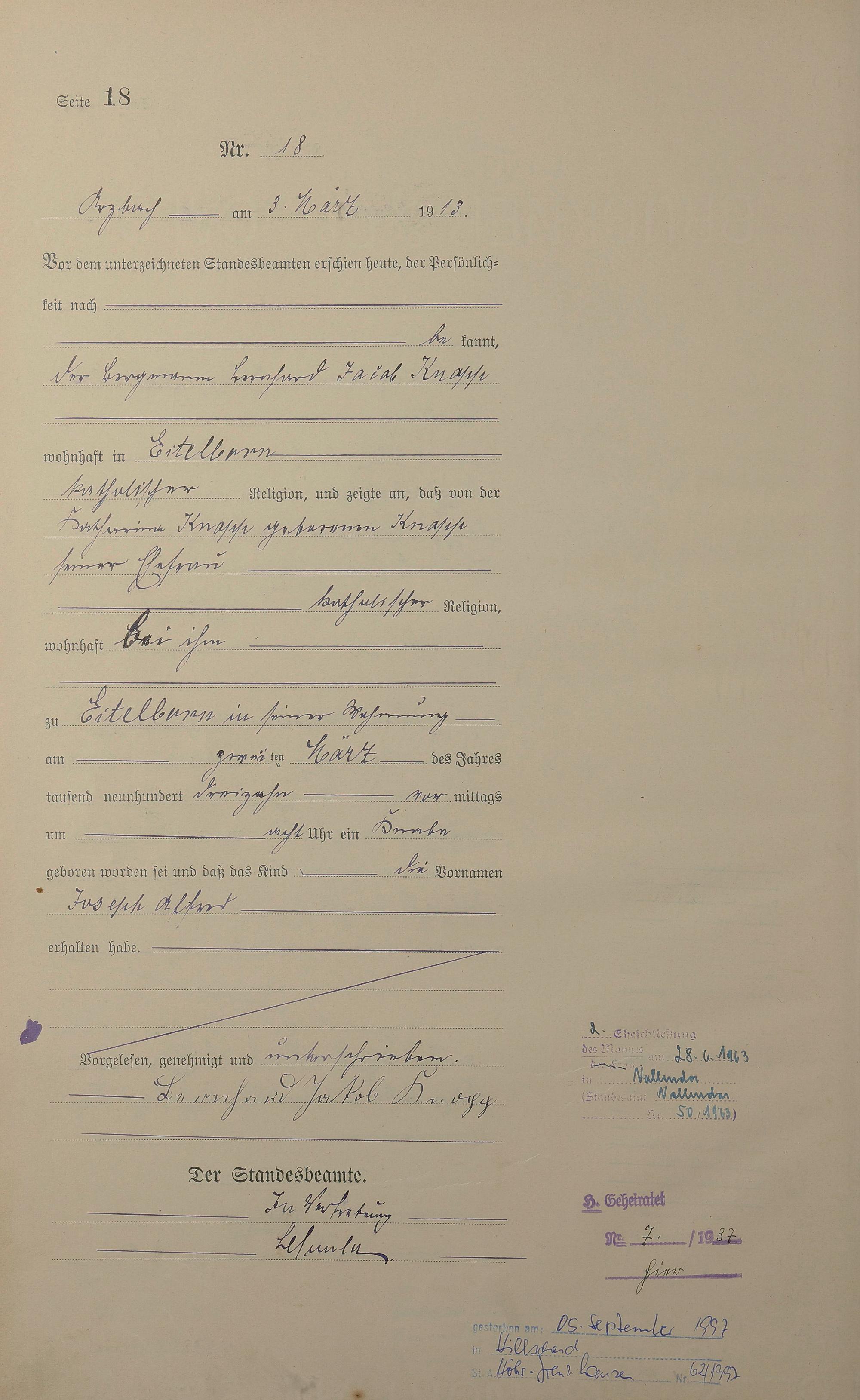 Geburtsregister 1913