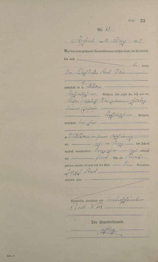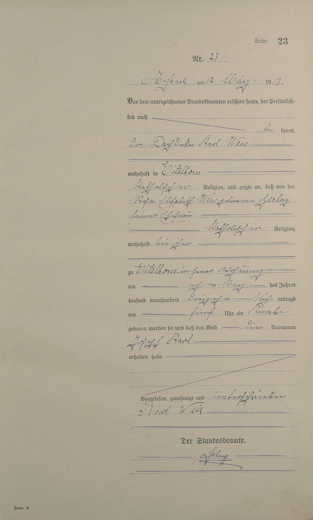 Geburtsregister 1913