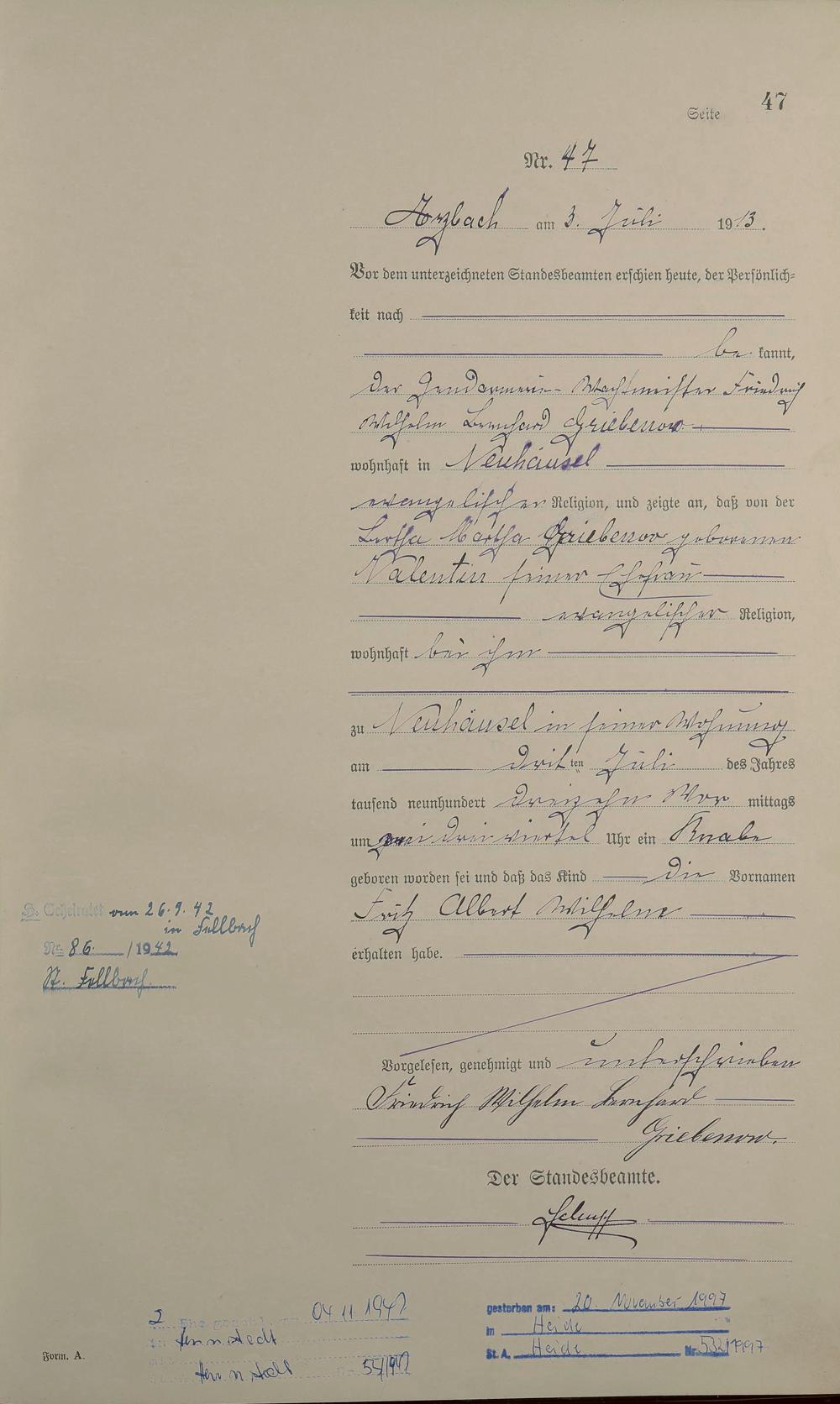 Geburtsregister 1913