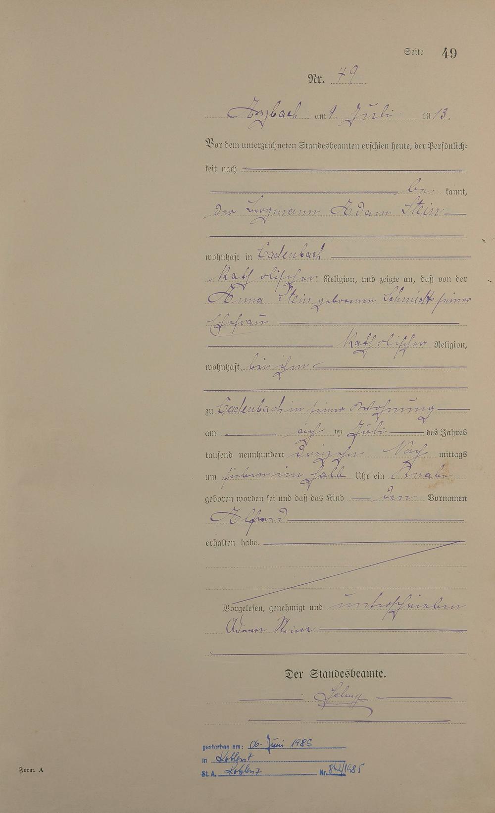 Geburtsregister 1913