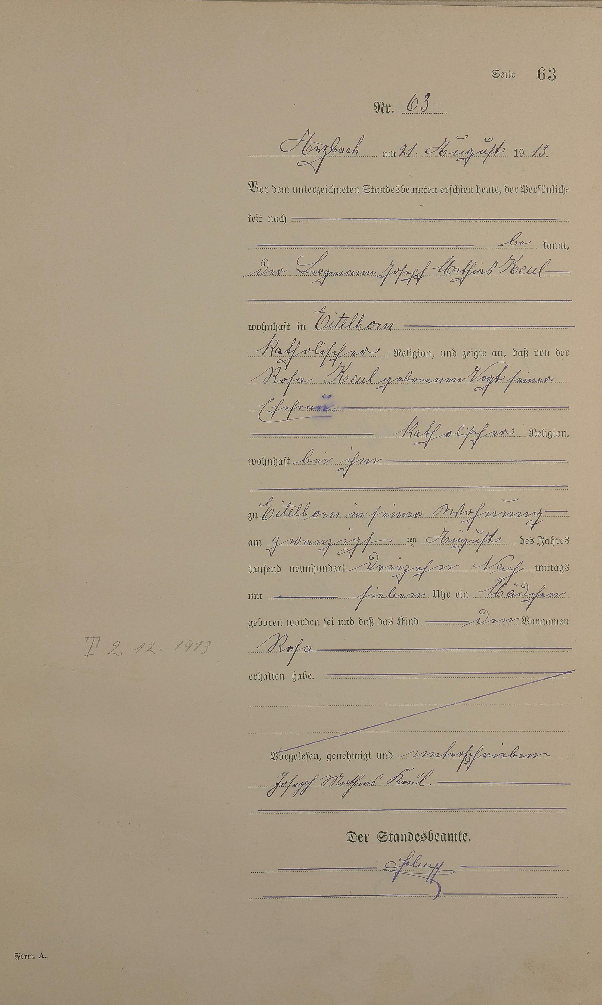 Geburtsregister 1913