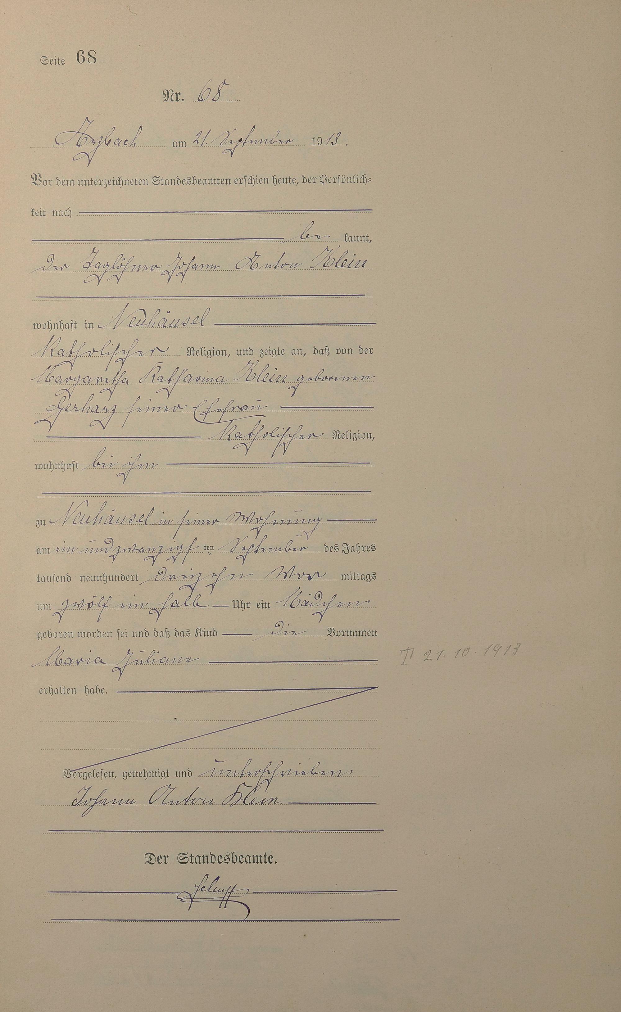 Geburtsregister 1913