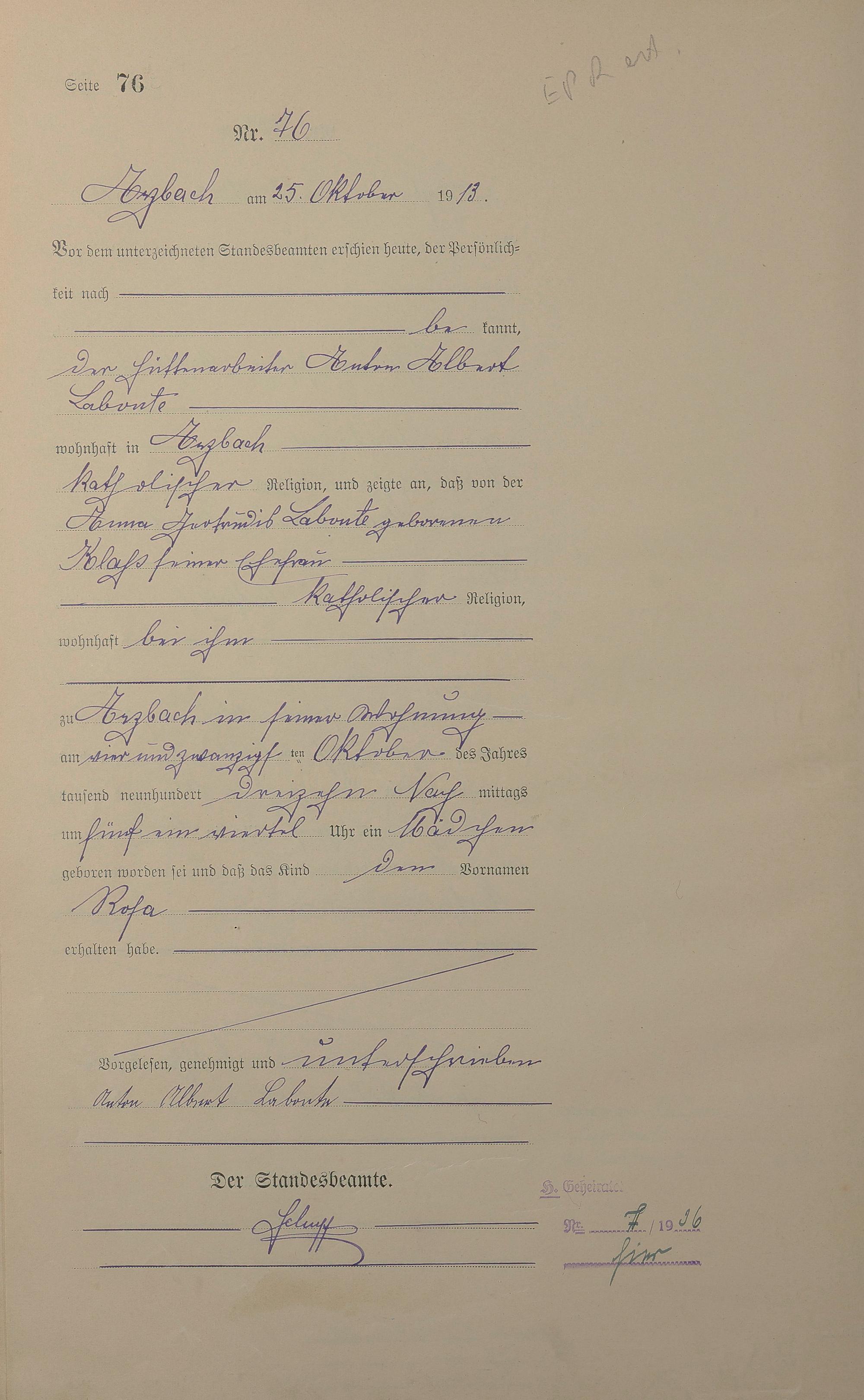 Geburtsregister 1913