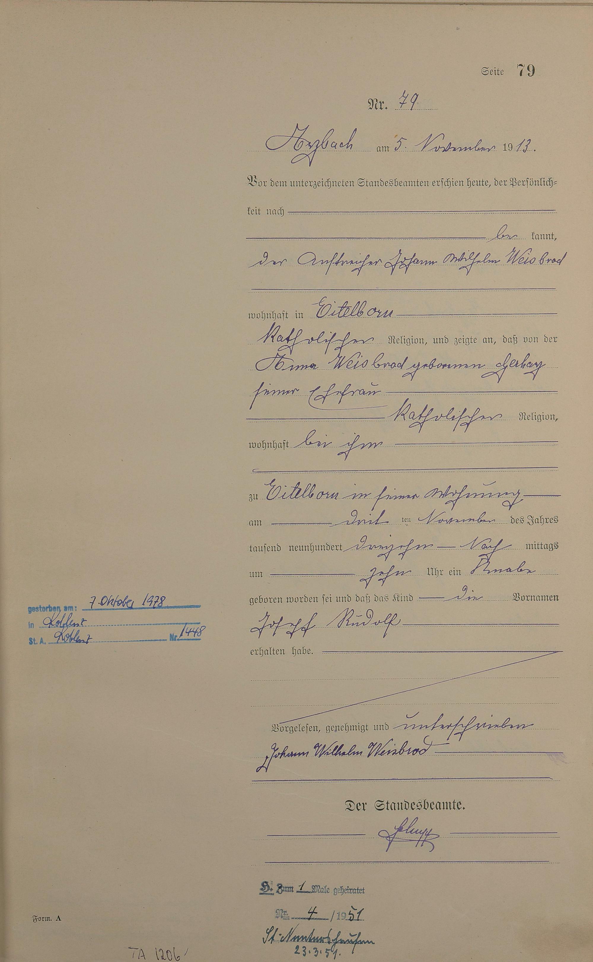 Geburtsregister 1913