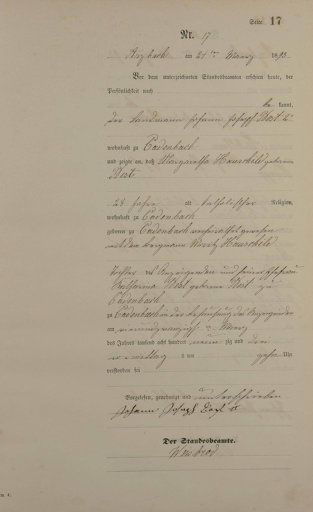 Sterberegister 1893