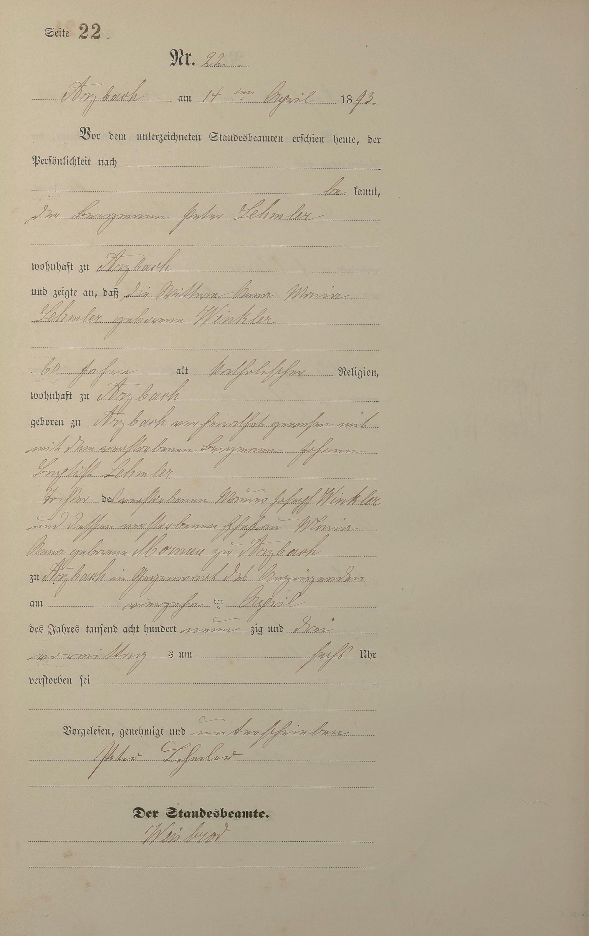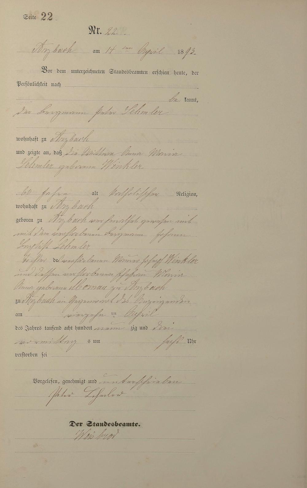Sterberegister 1893