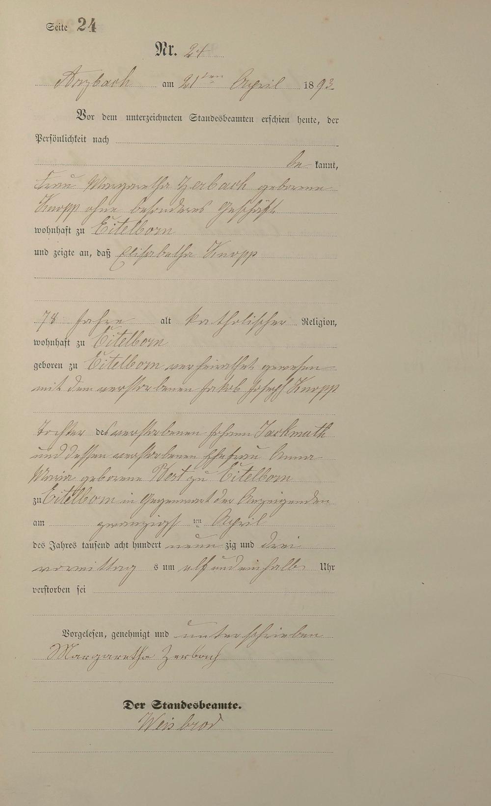 Sterberegister 1893