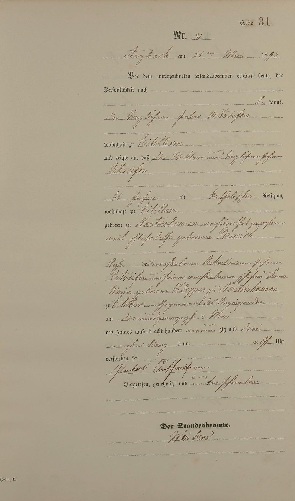 Sterberegister 1893