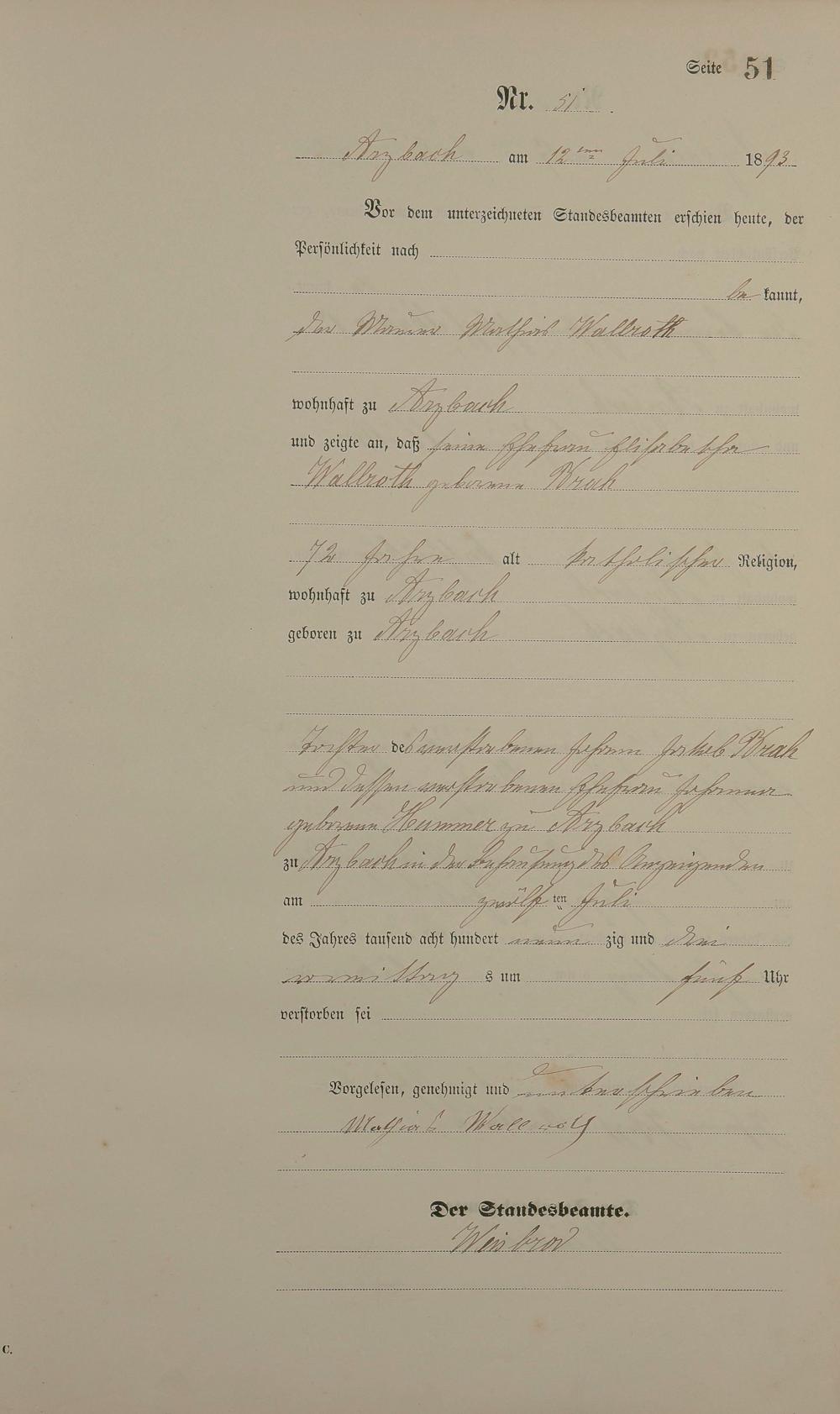 Sterberegister 1893