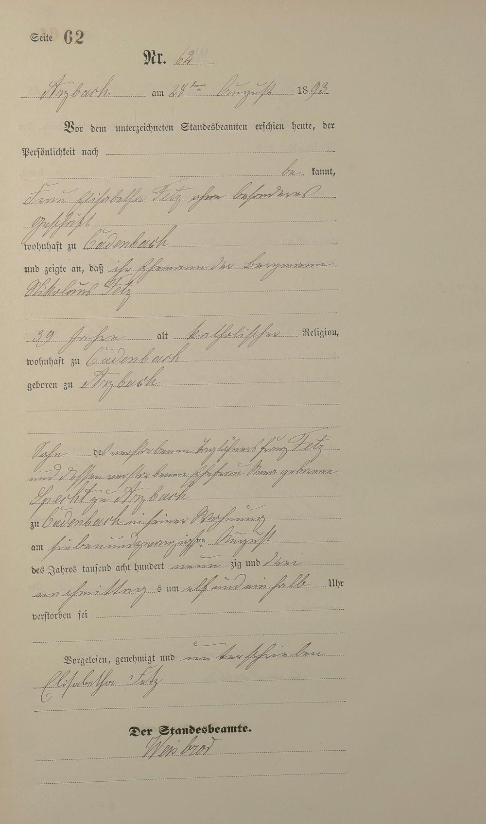 Sterberegister 1893
