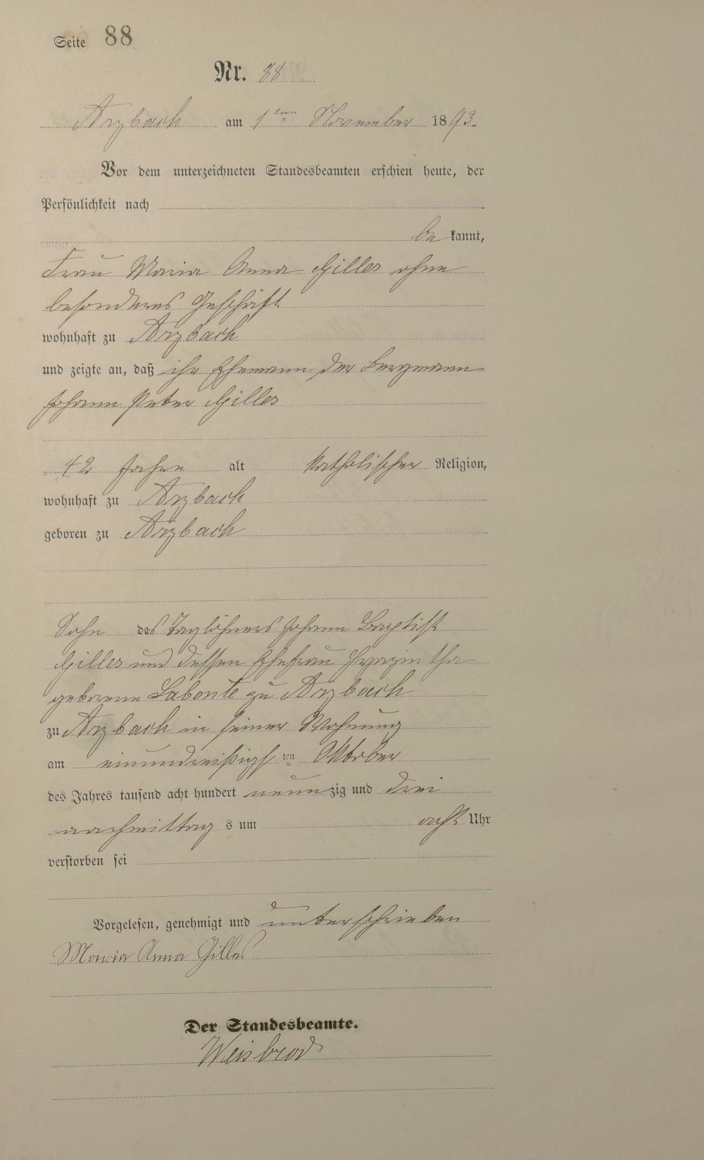 Sterberegister 1893