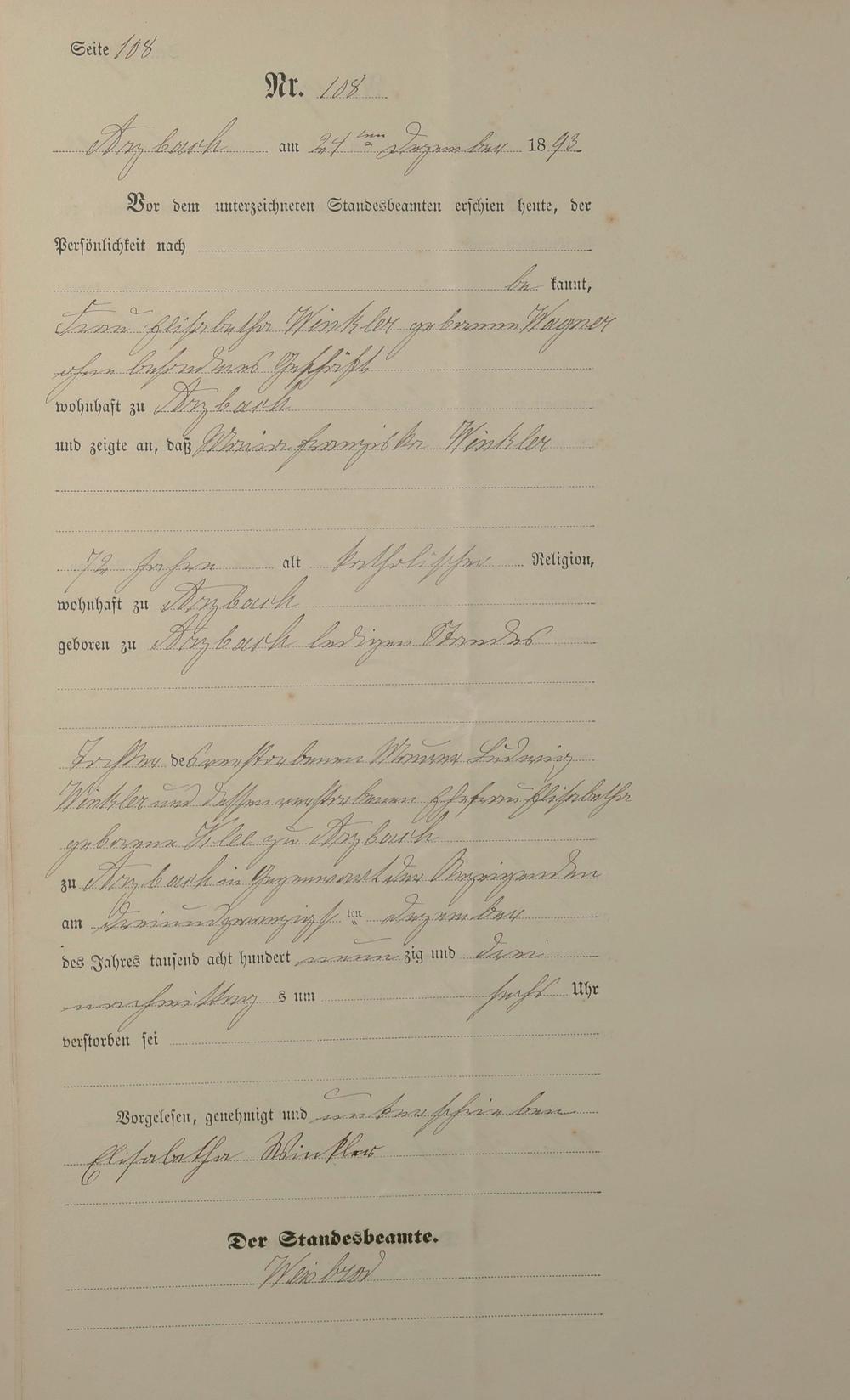 163/2: Sterberegister 1893