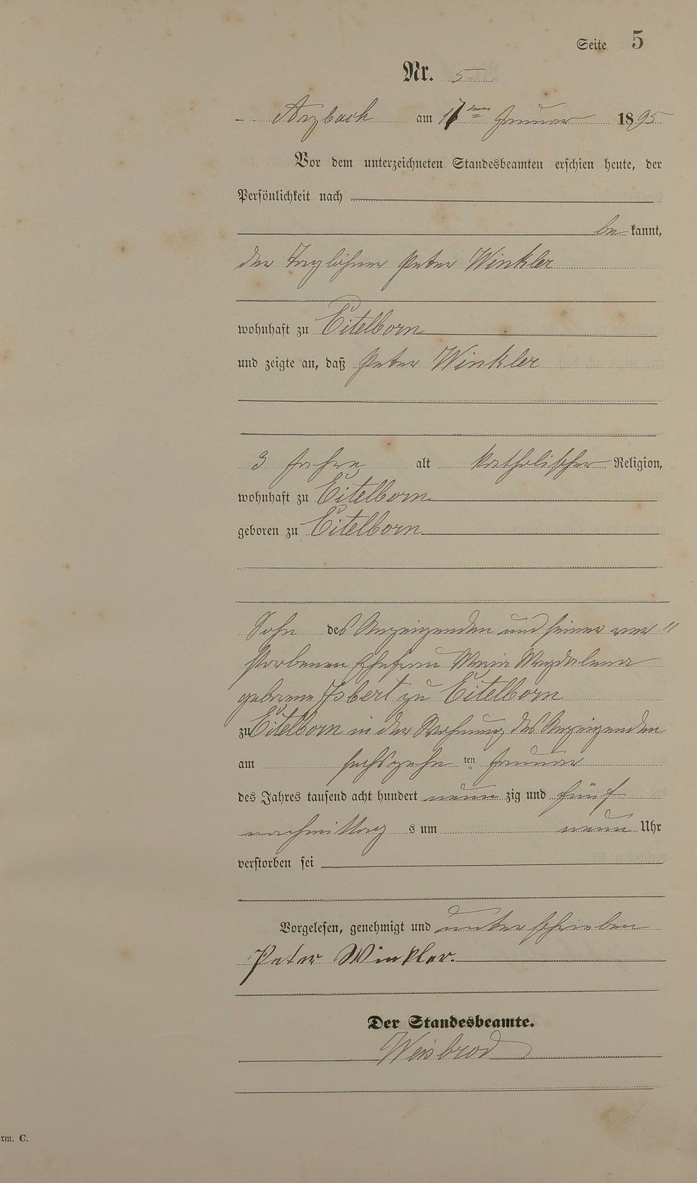 163/4: Sterberegister 1895