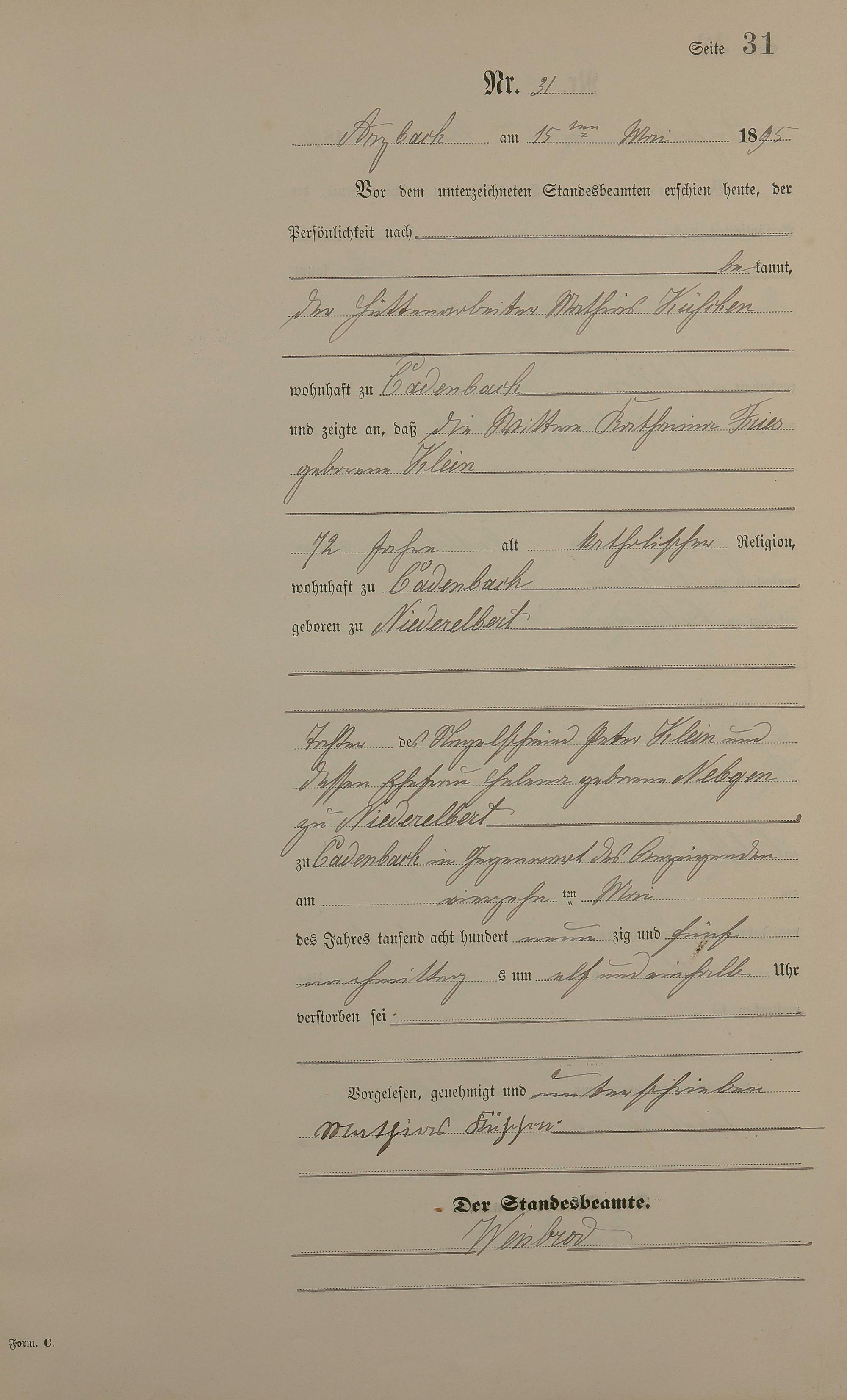 Sterberegister 1895