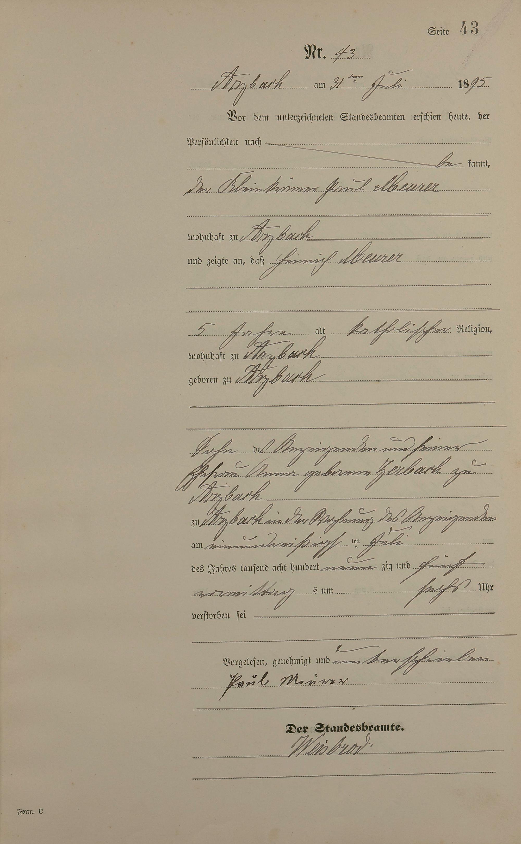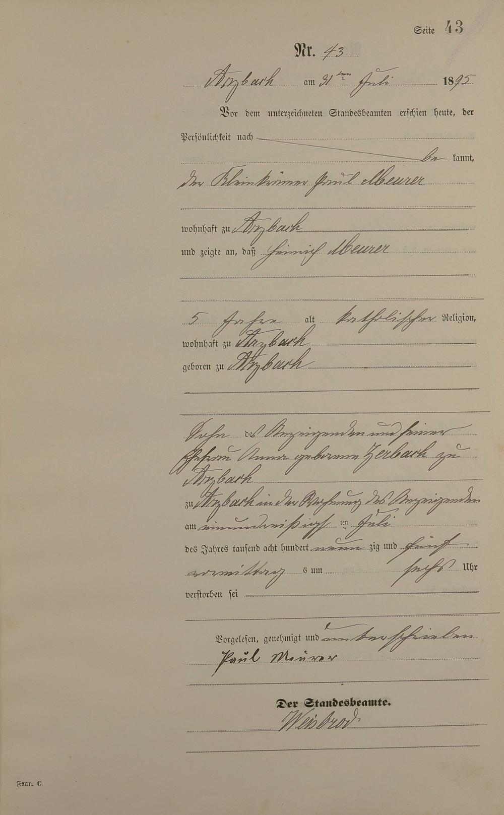 Sterberegister 1895