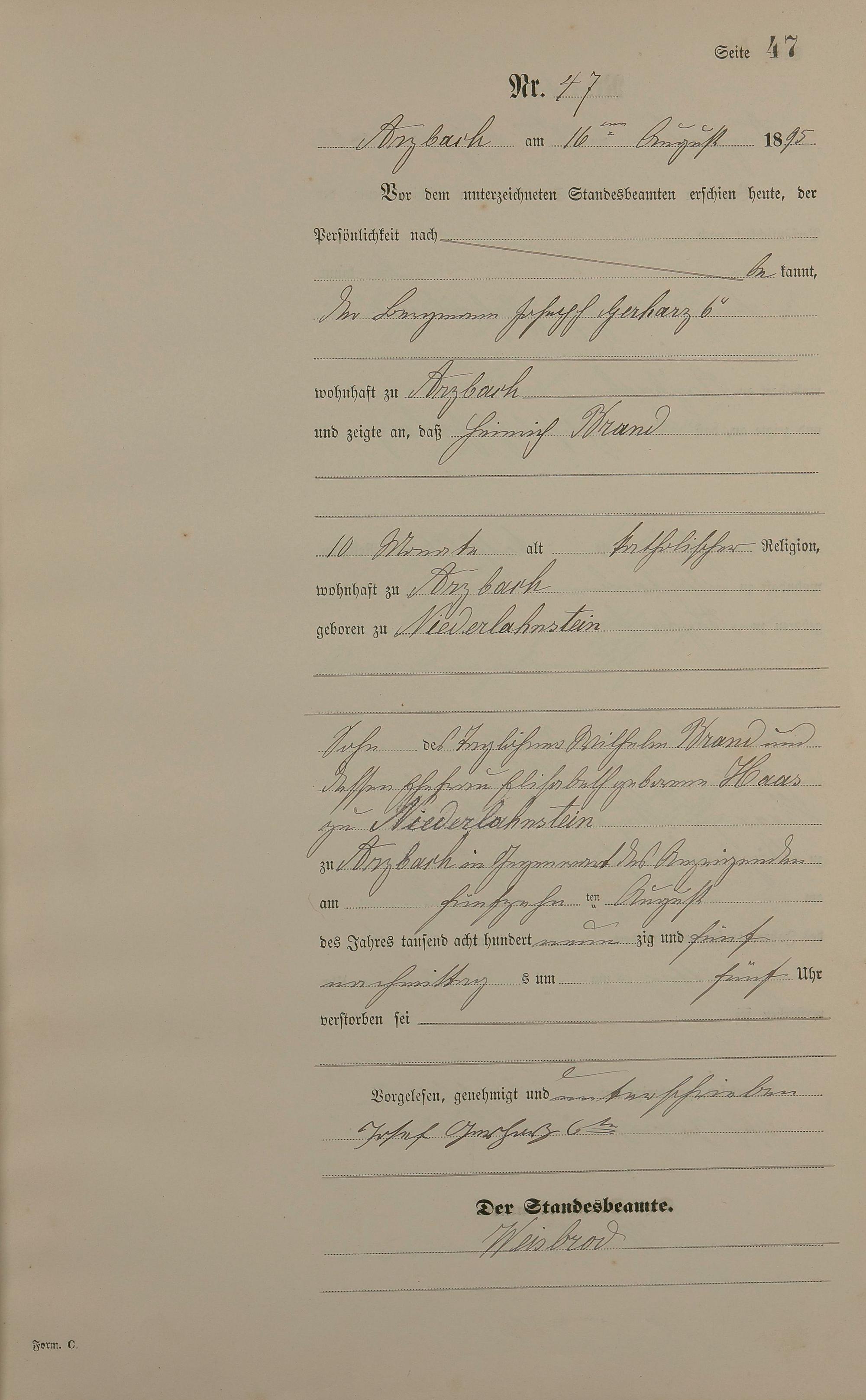 Sterberegister 1895