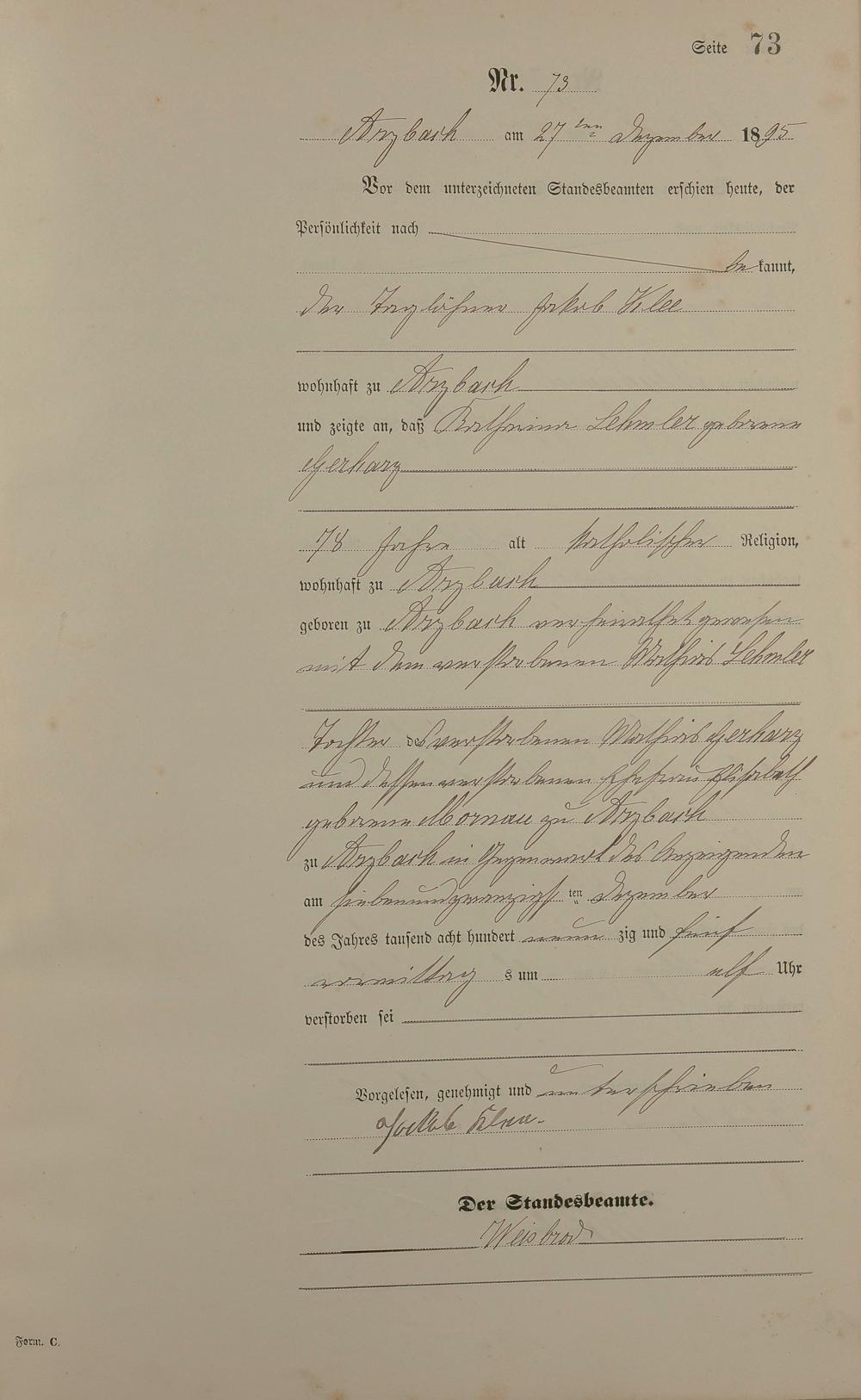 Sterberegister 1895