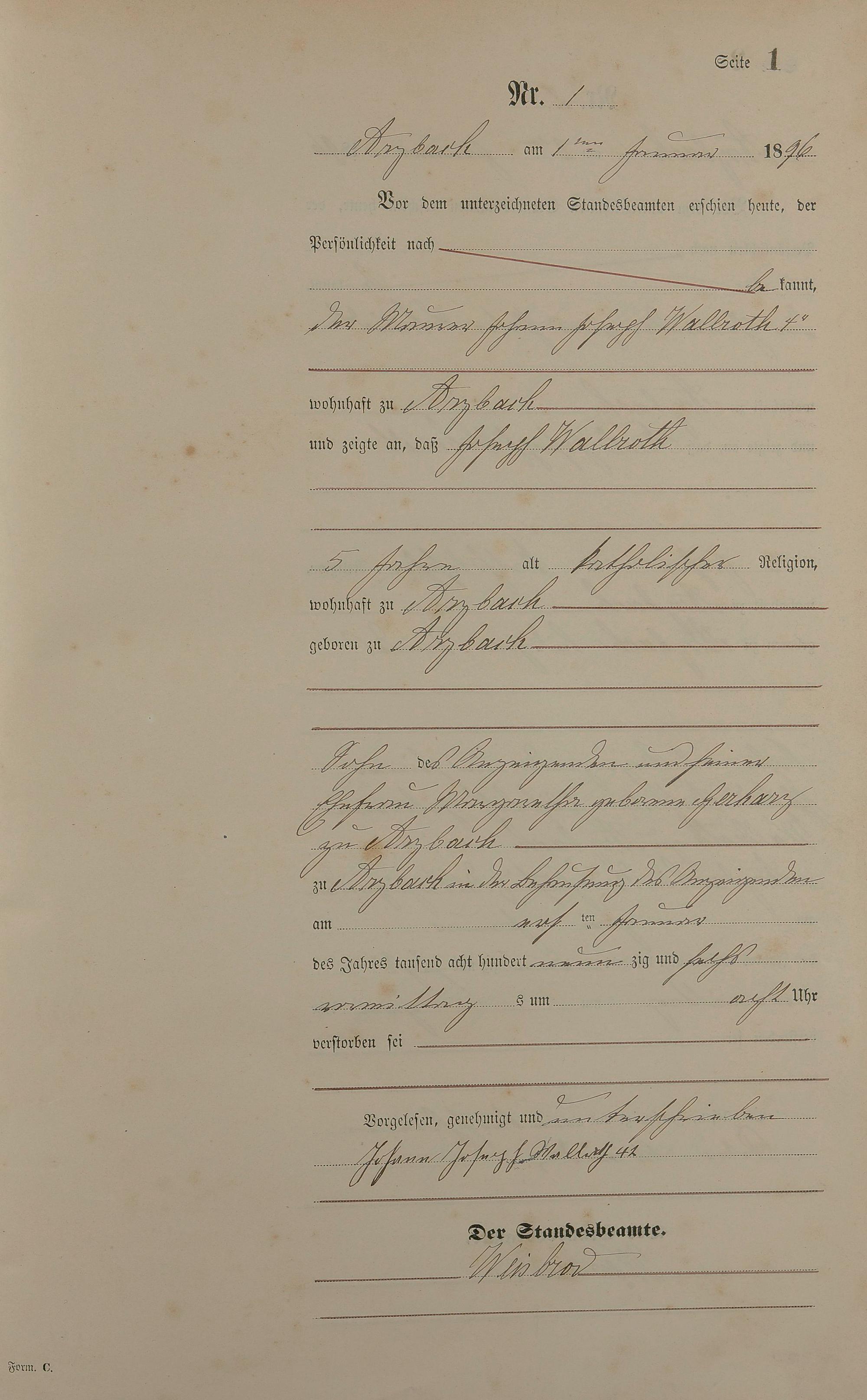 Sterberegister 1896
