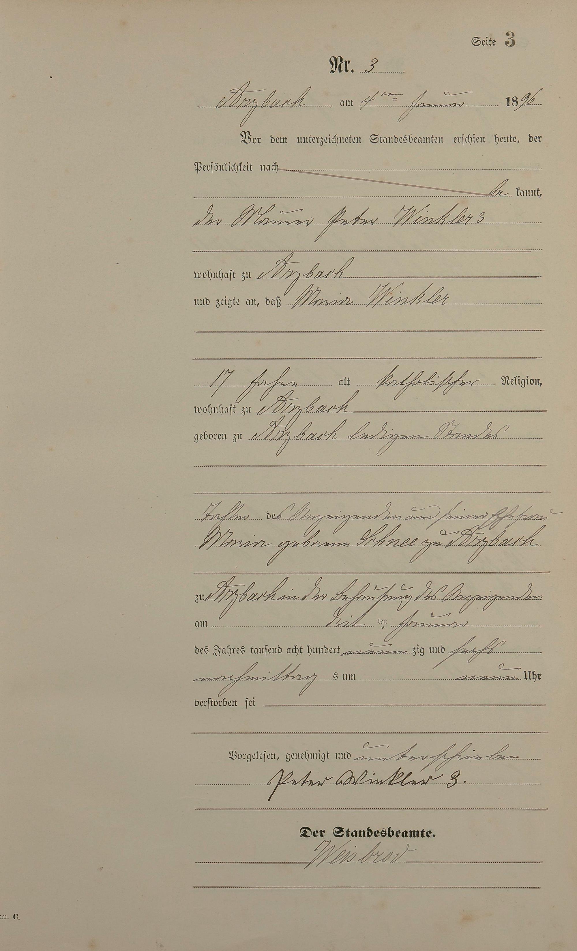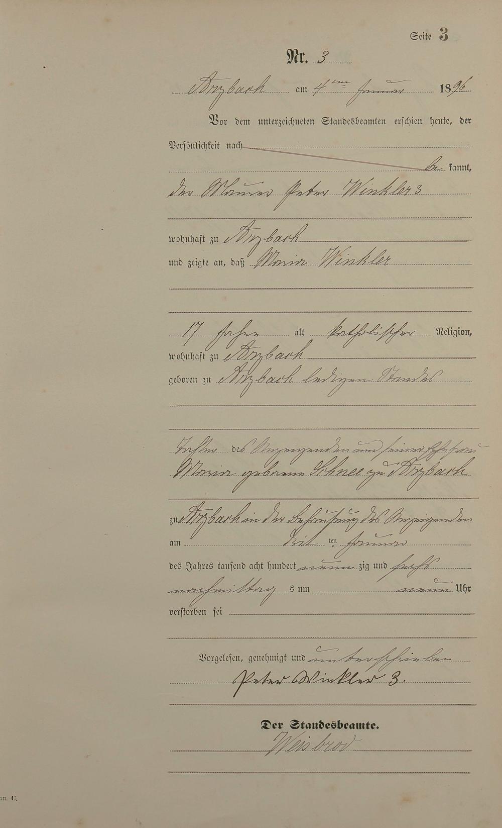 Sterberegister 1896