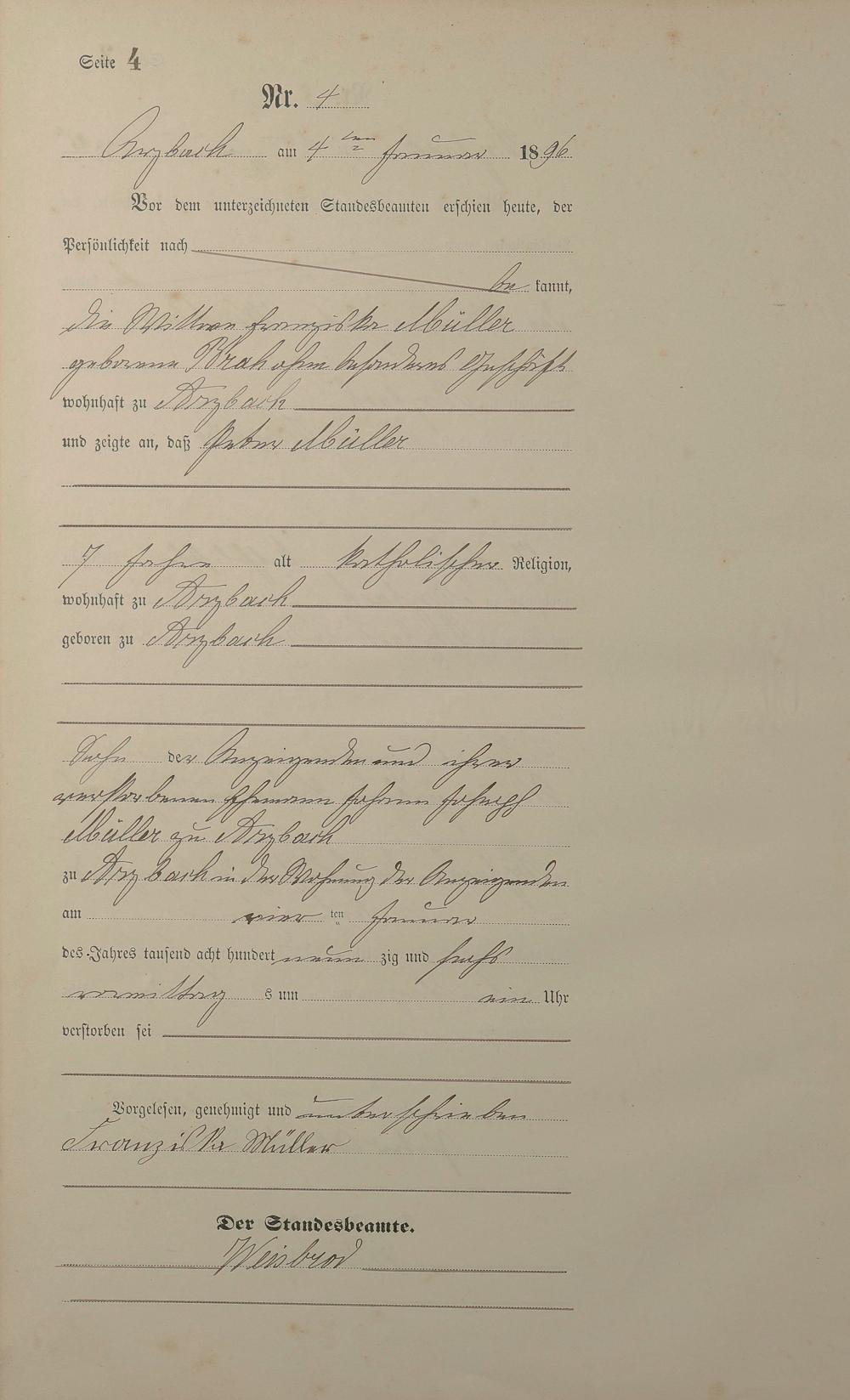Sterberegister 1896