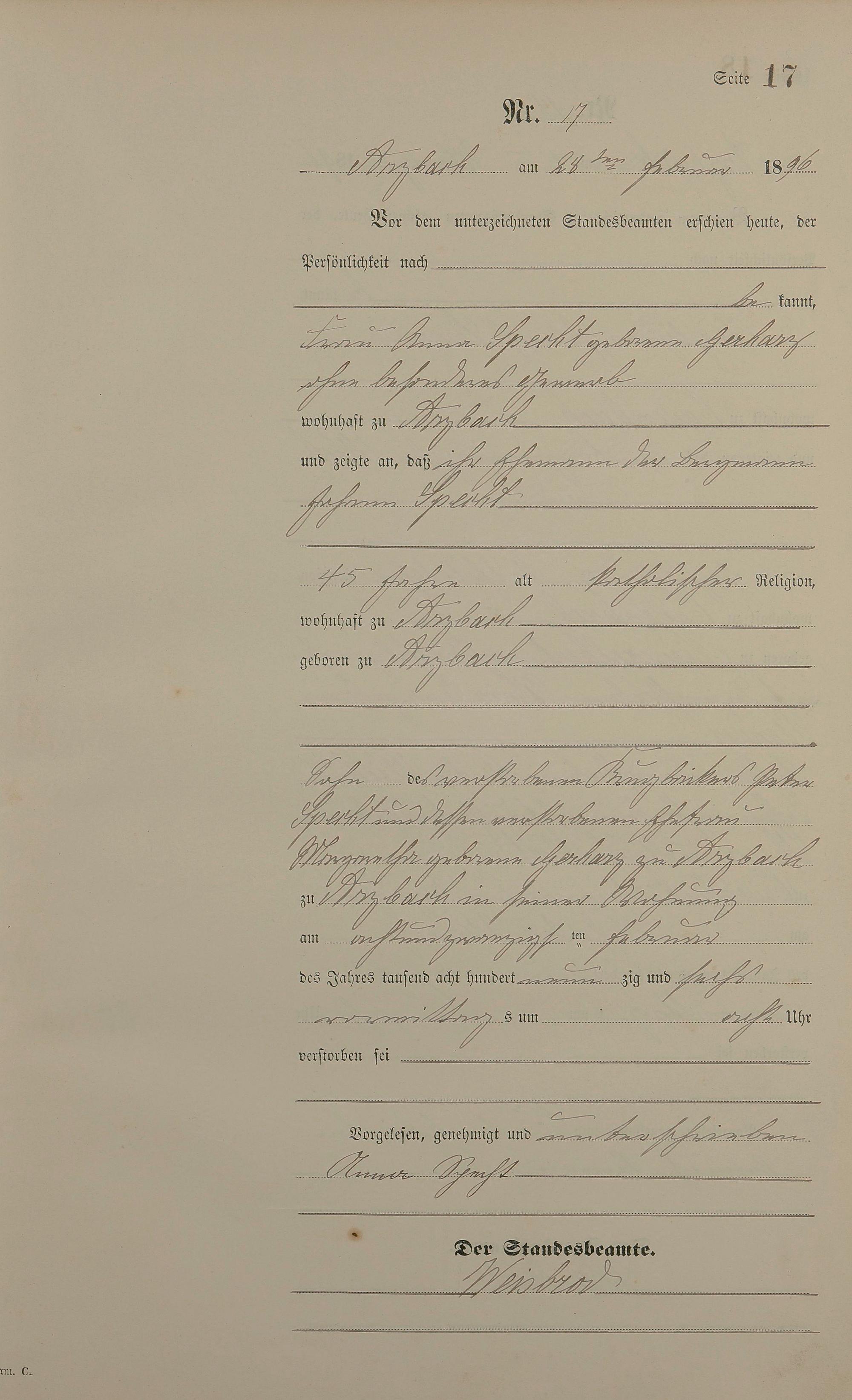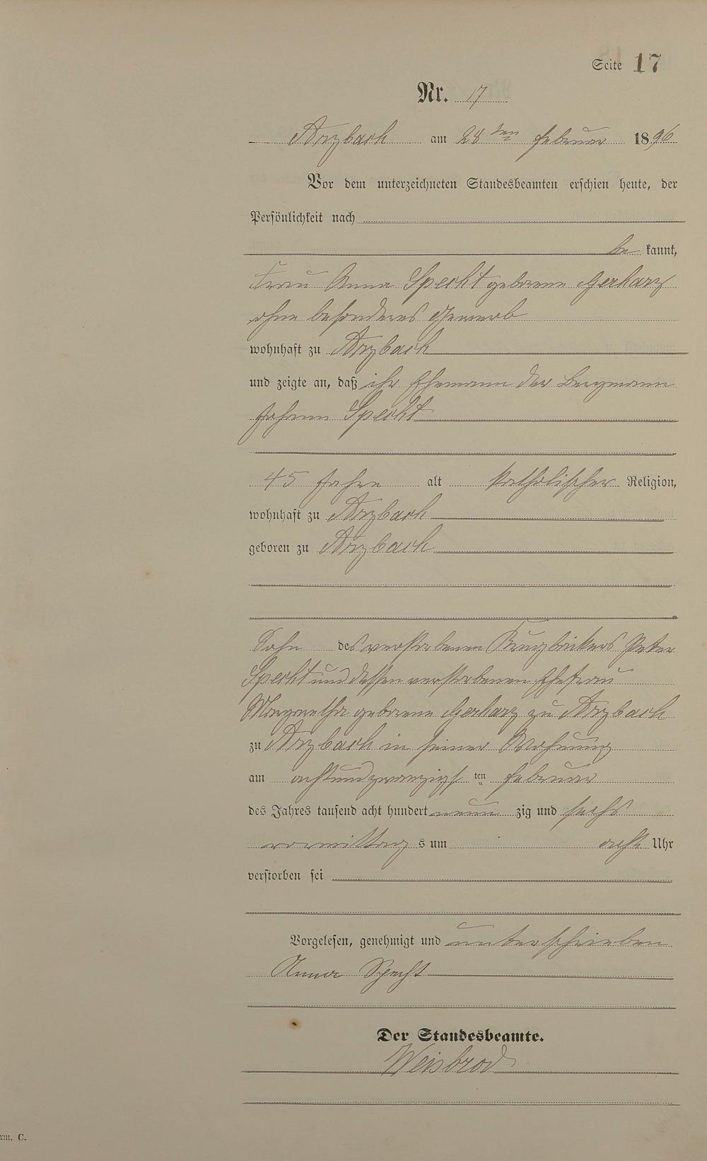 Sterberegister 1896