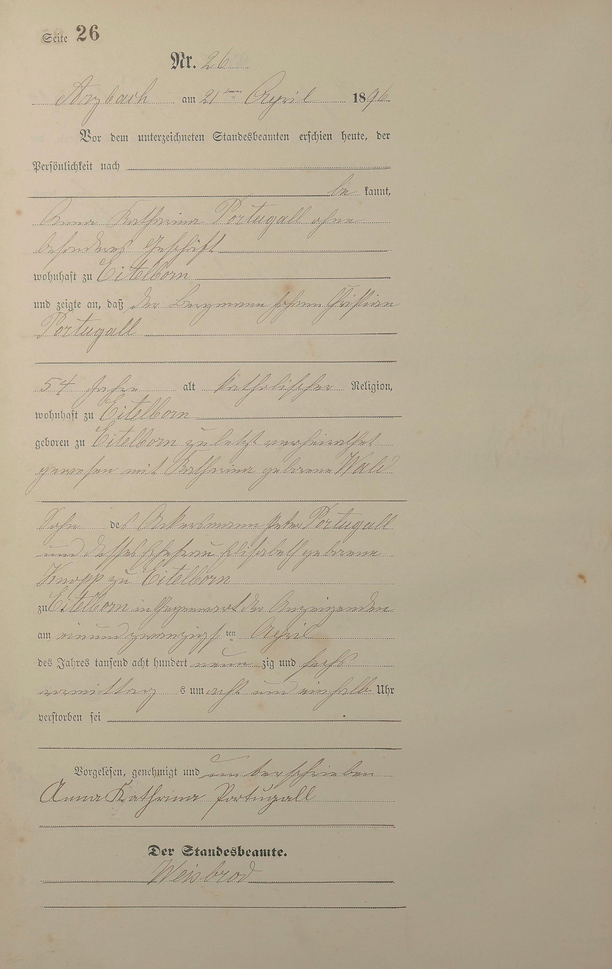 Sterberegister 1896