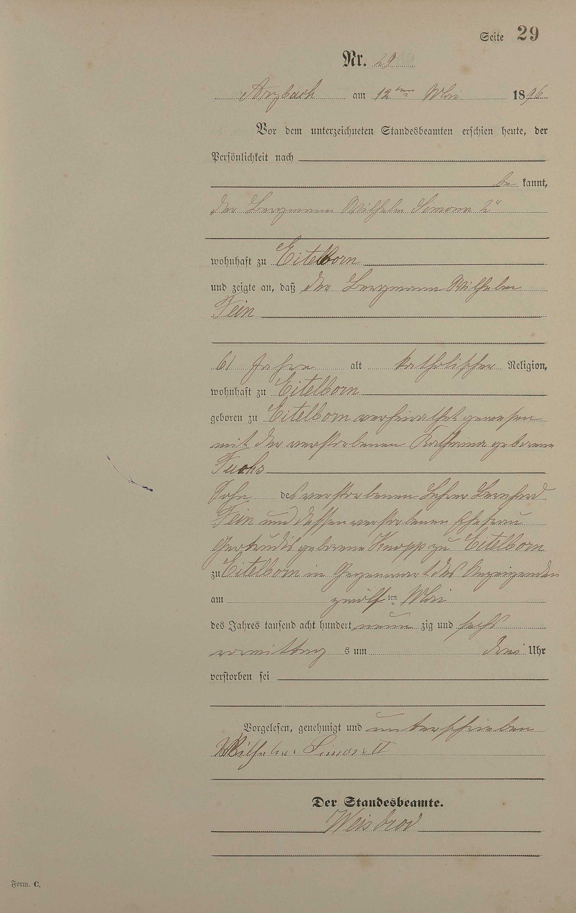 Sterberegister 1896