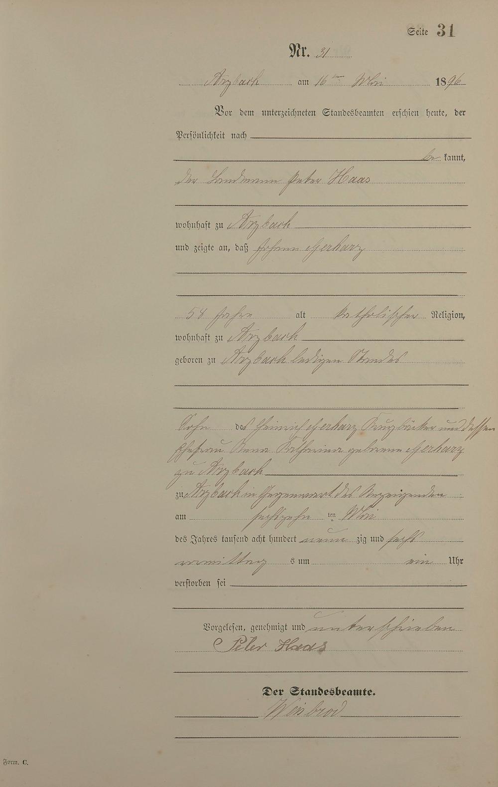 163/5: Sterberegister 1896