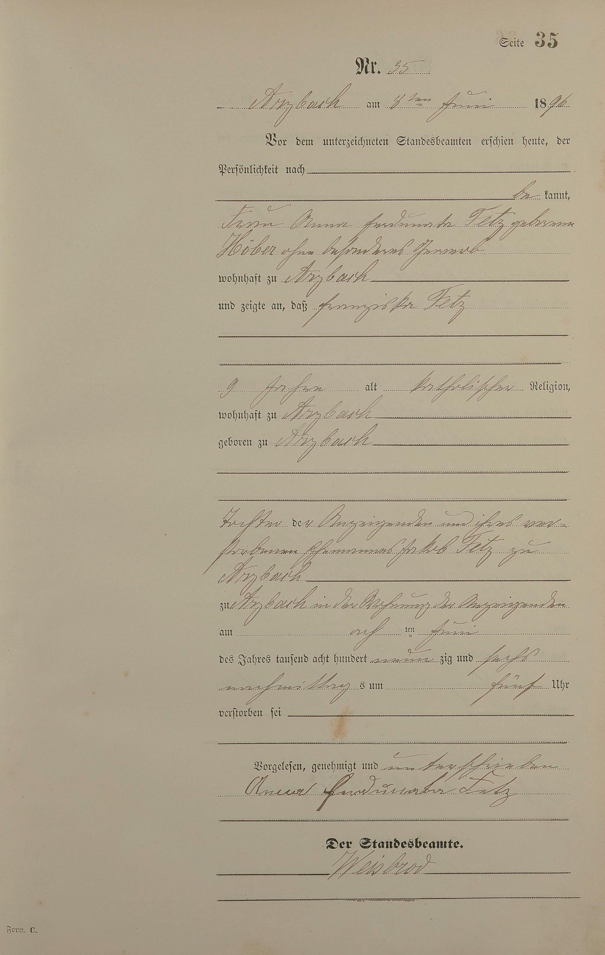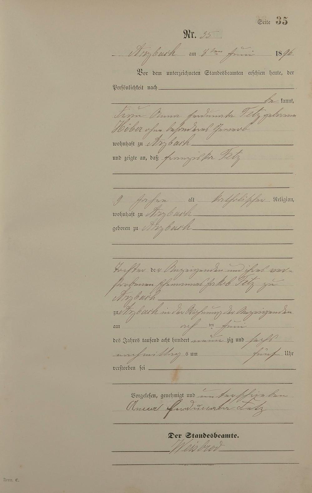 Sterberegister 1896
