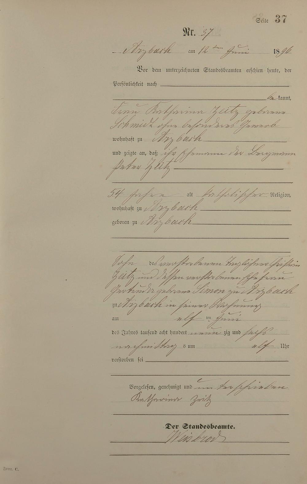 Sterberegister 1896