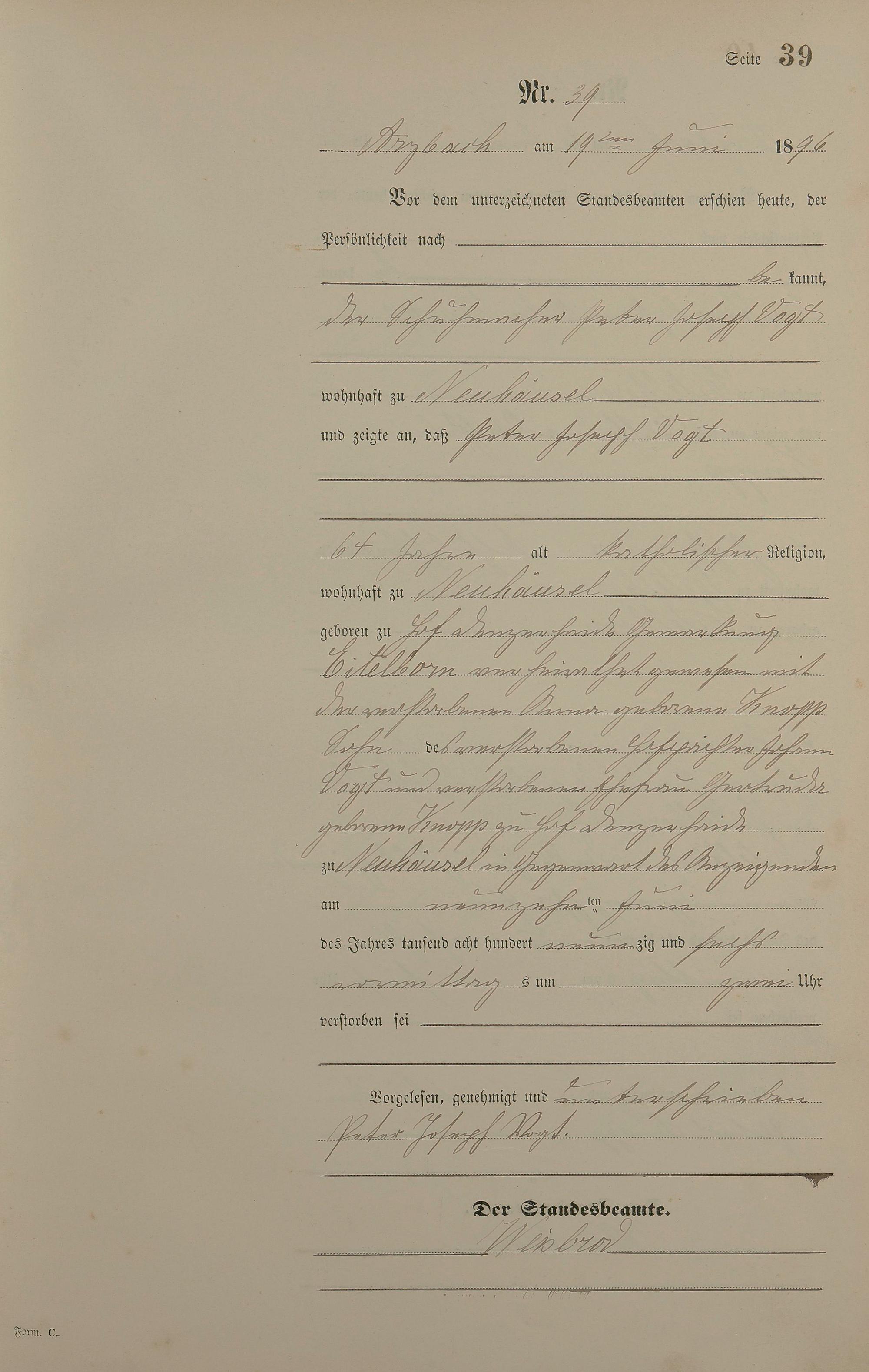 Sterberegister 1896