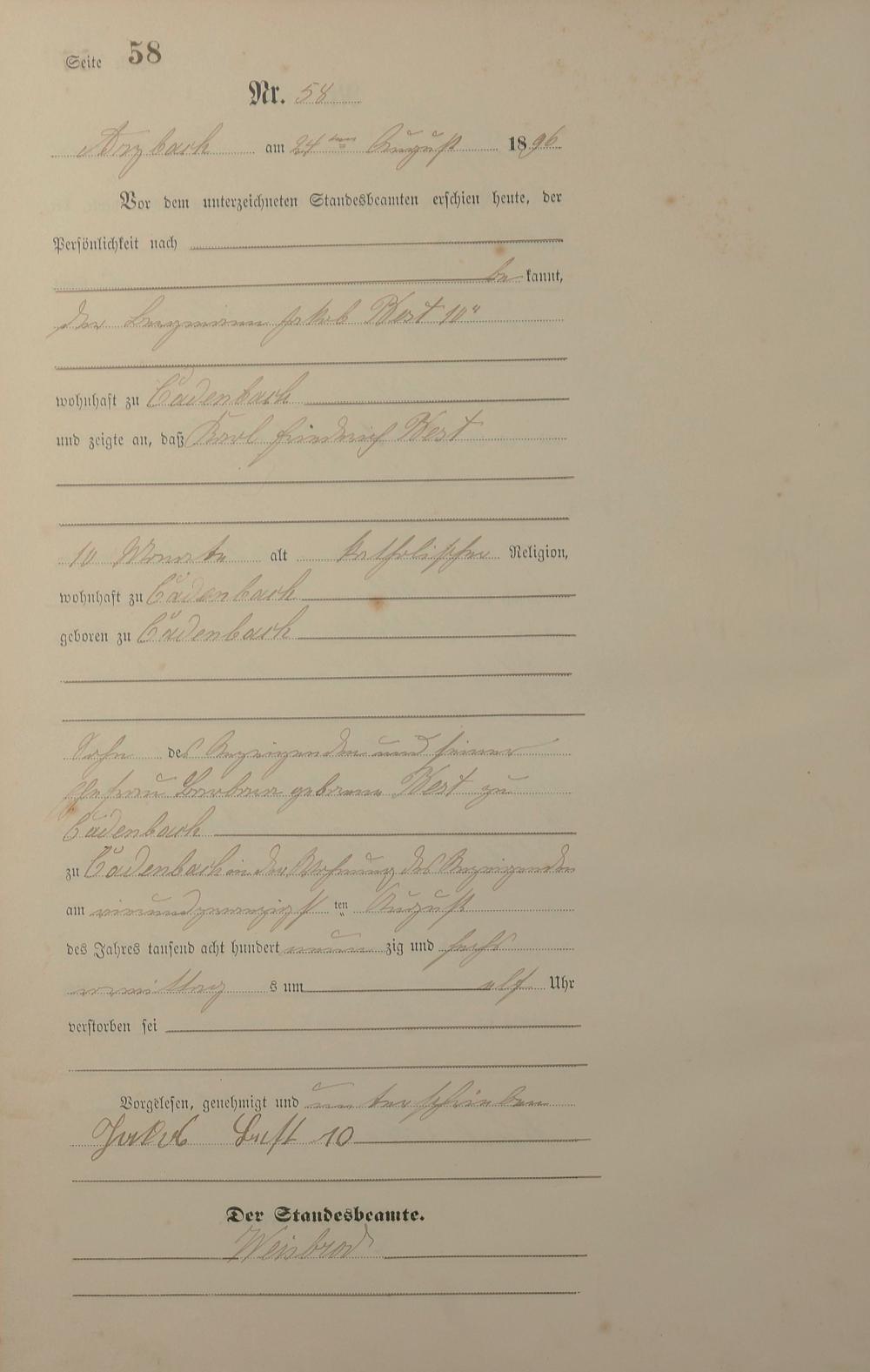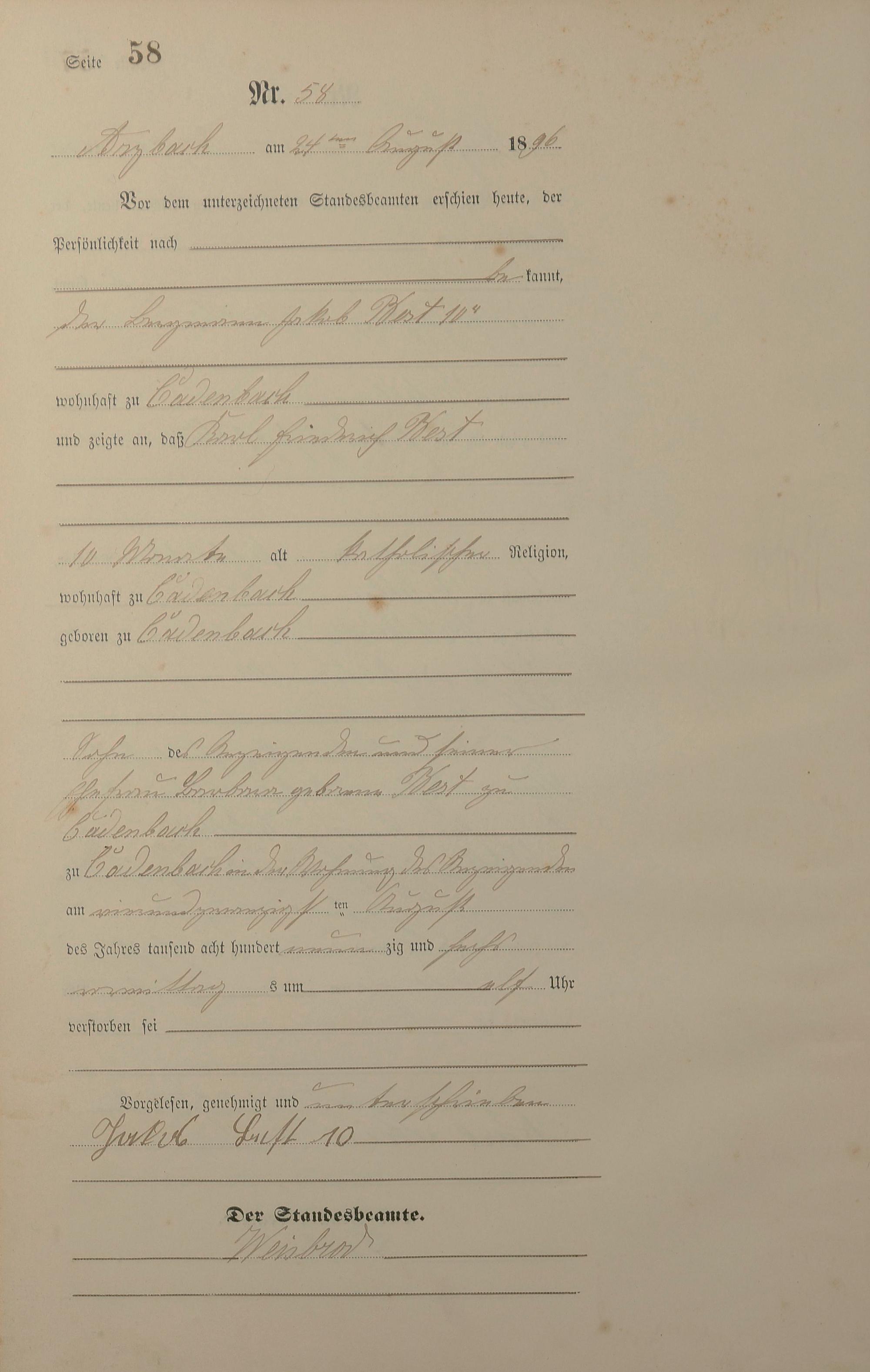 Sterberegister 1896