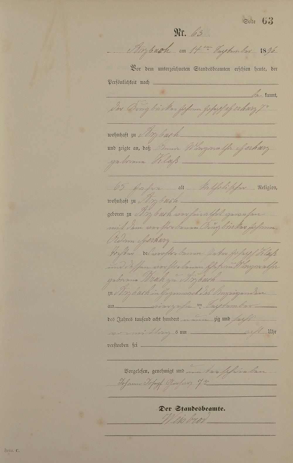 163/5: Sterberegister 1896
