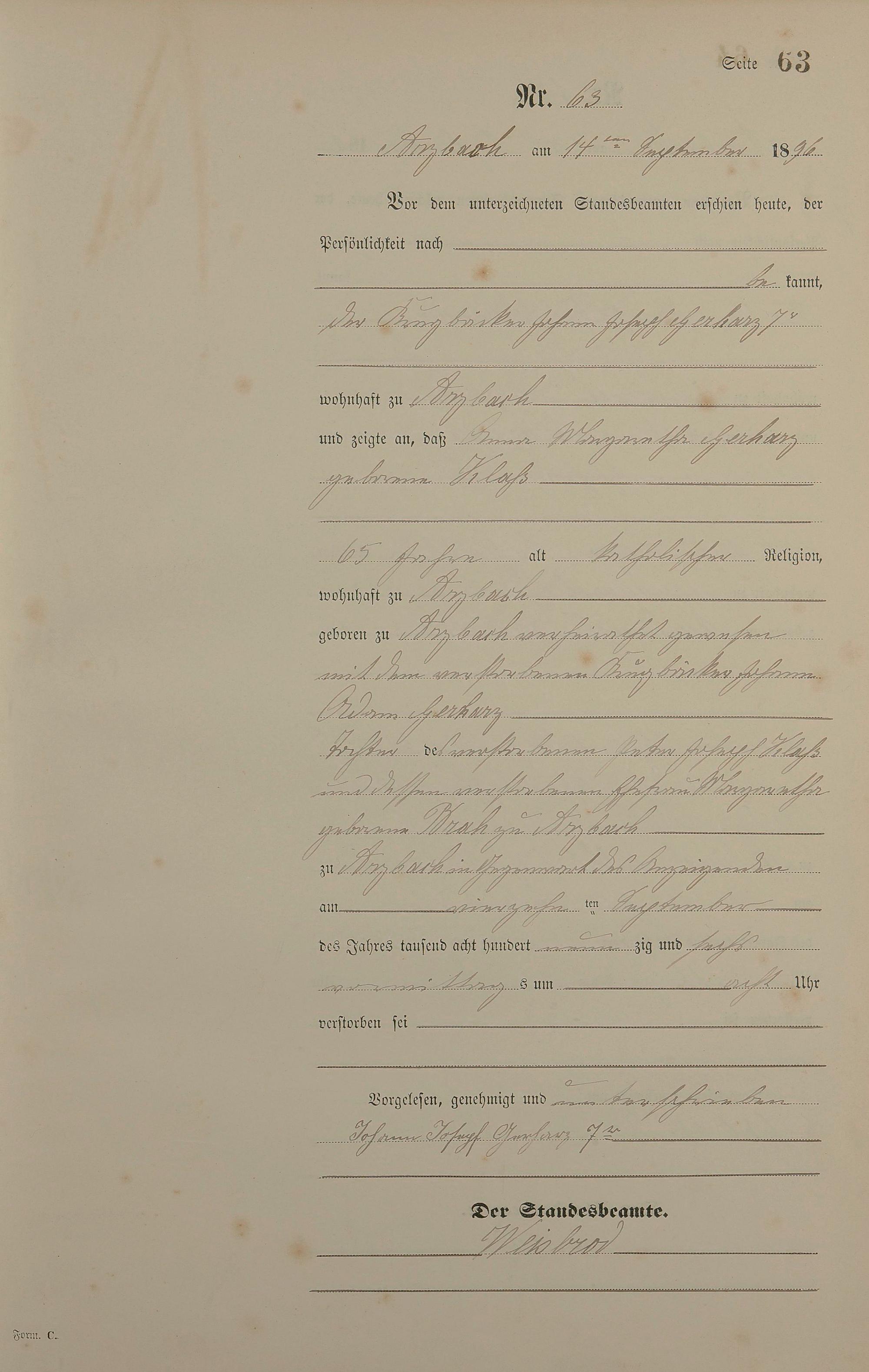 Sterberegister 1896