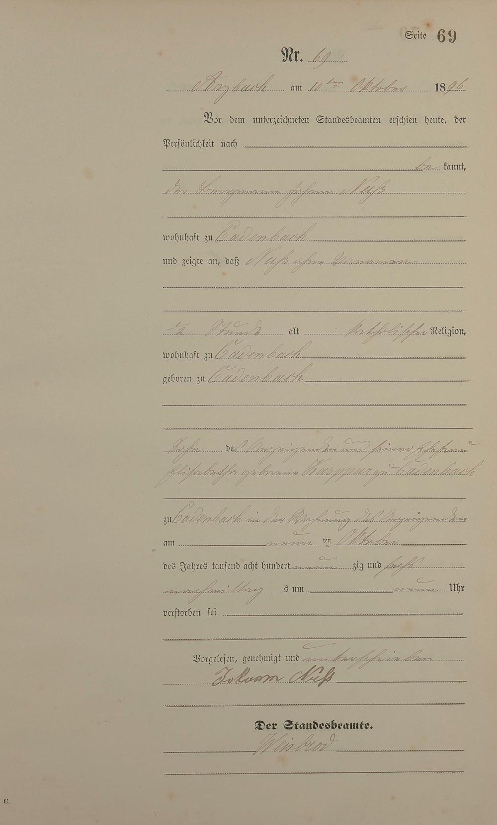 Sterberegister 1896