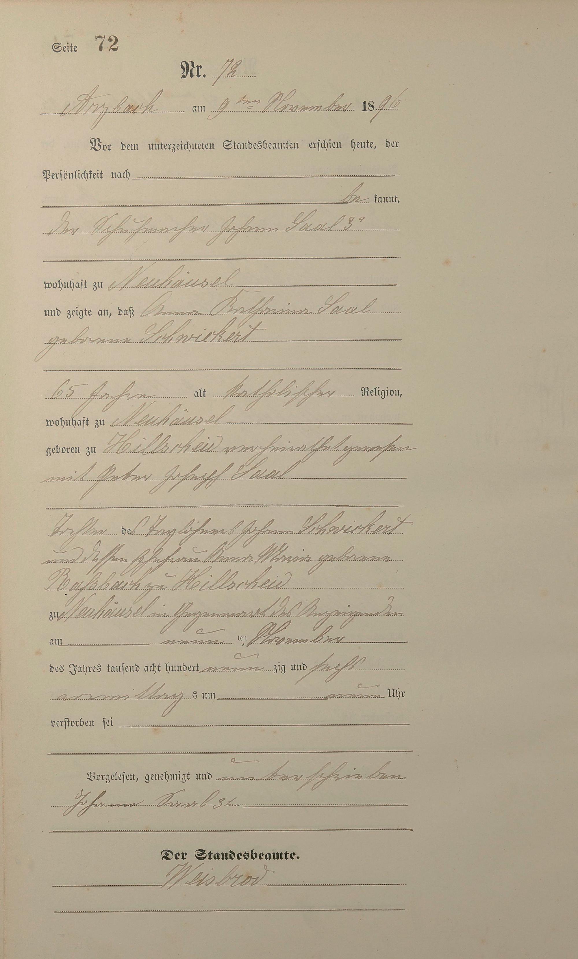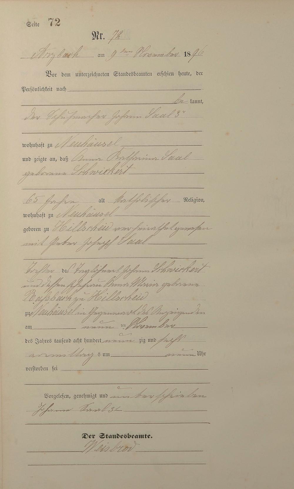 Sterberegister 1896