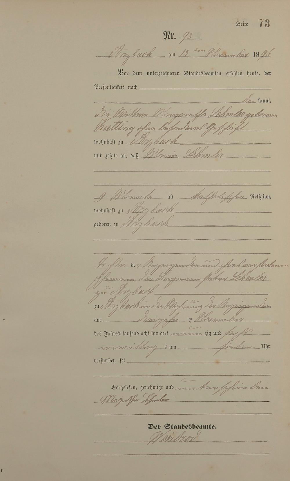 Sterberegister 1896