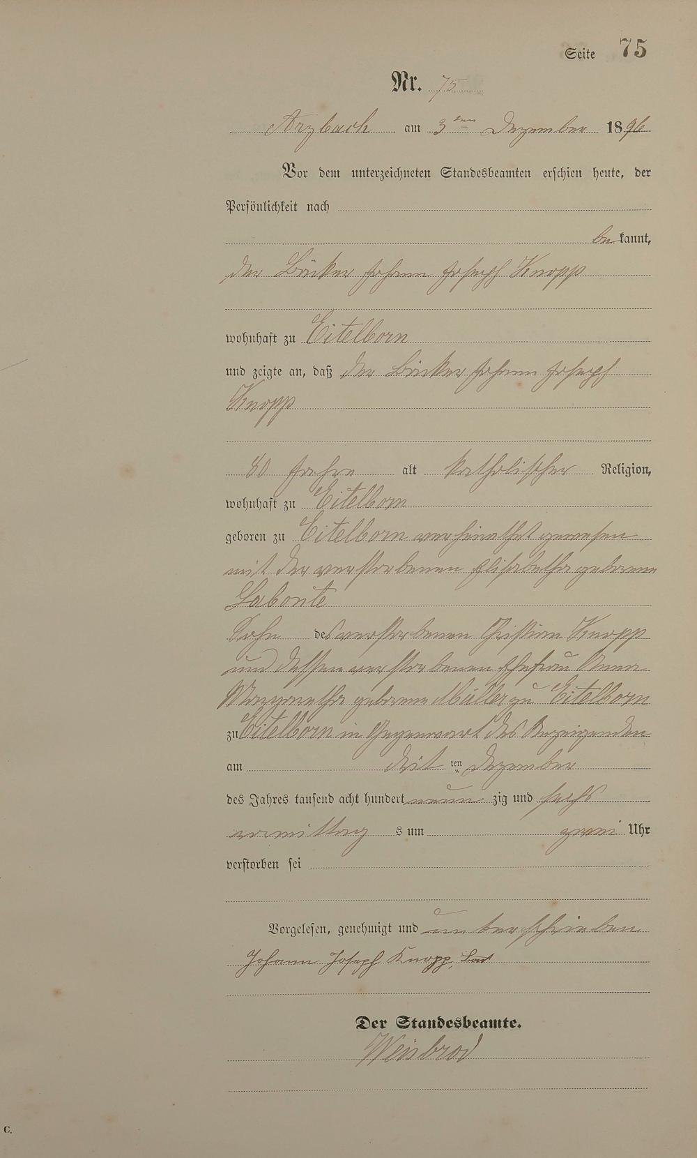 163/5: Sterberegister 1896