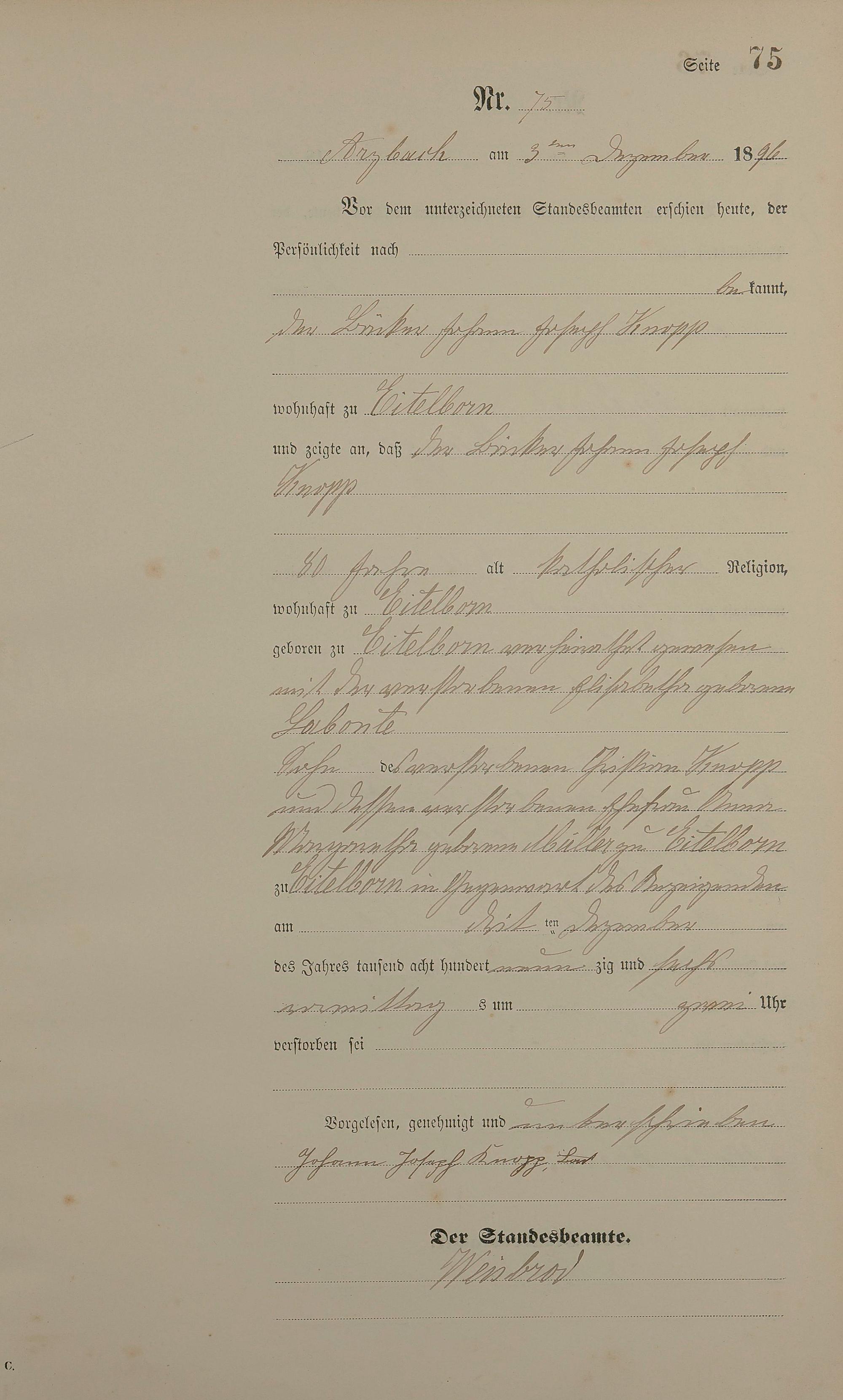Sterberegister 1896