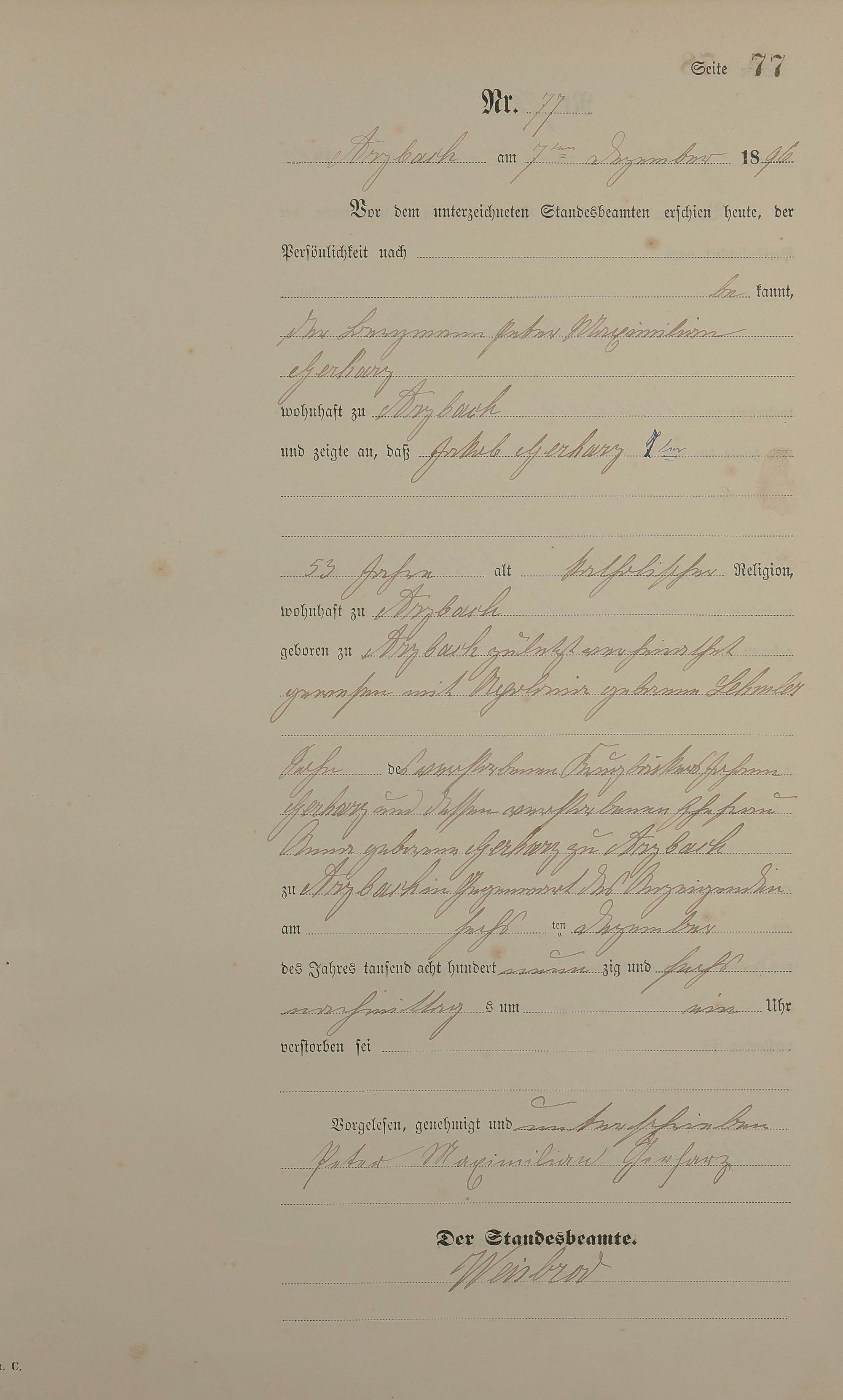 Sterberegister 1896