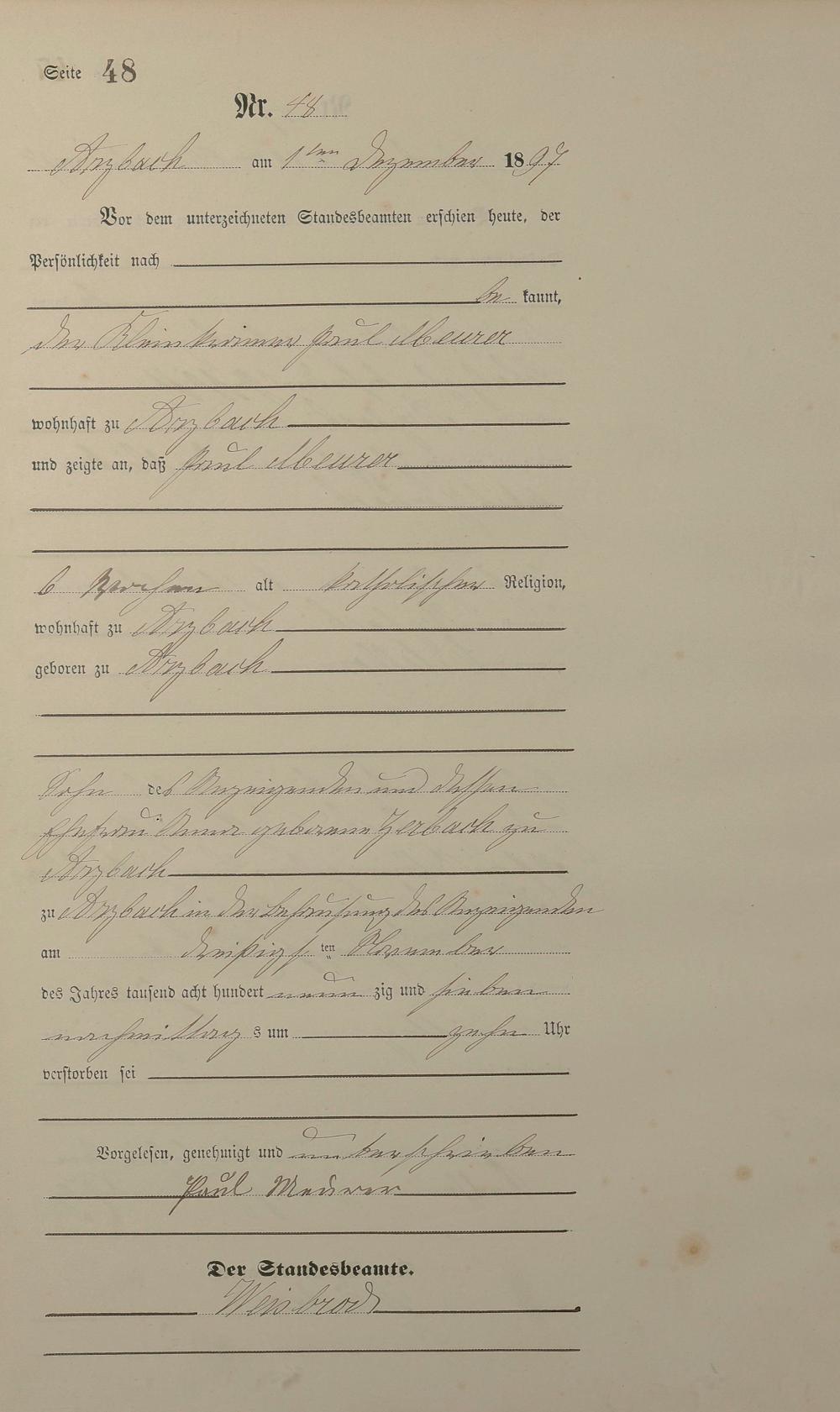 Sterberegister 1897