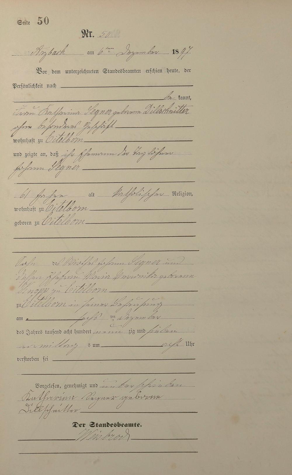 Sterberegister 1897